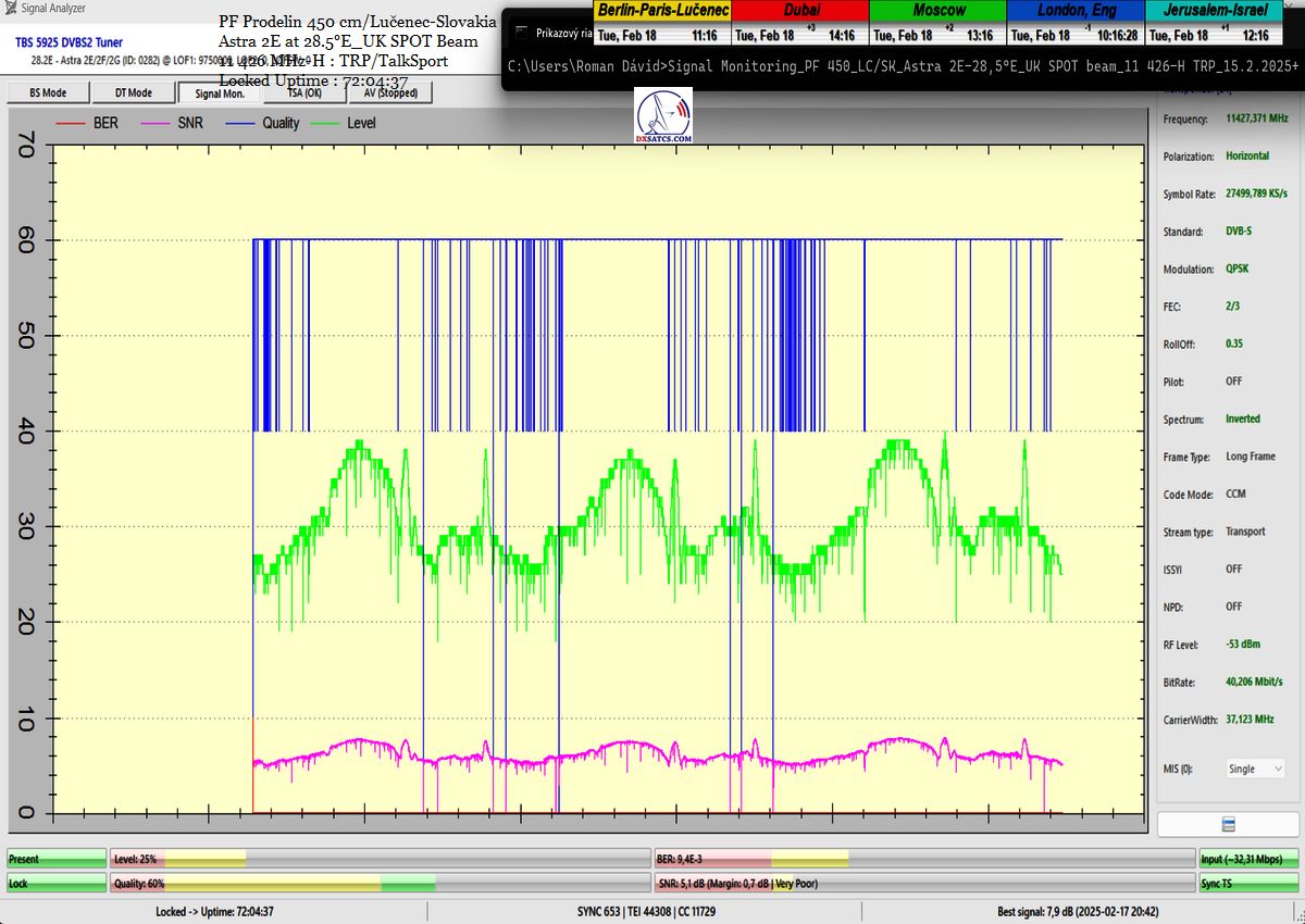 ►►Astra 2E at 28.5°E-UK Spot Beam: Continuous signal monitoring / Nepretržitý signálny monitoring