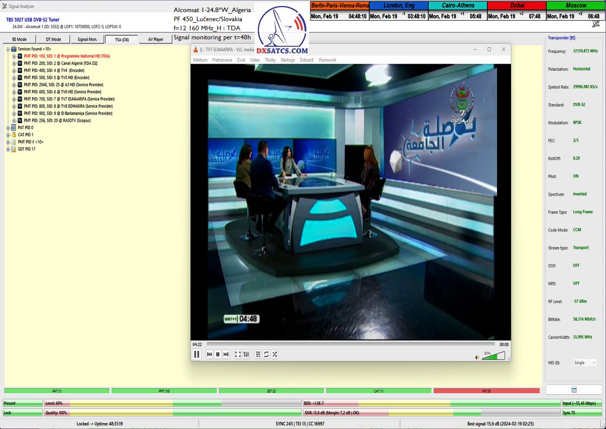►►Alcomsat 1 at 24.8°W-TDA Algeria : Continuous signal monitoring / Nepretržitý signálny monitoring