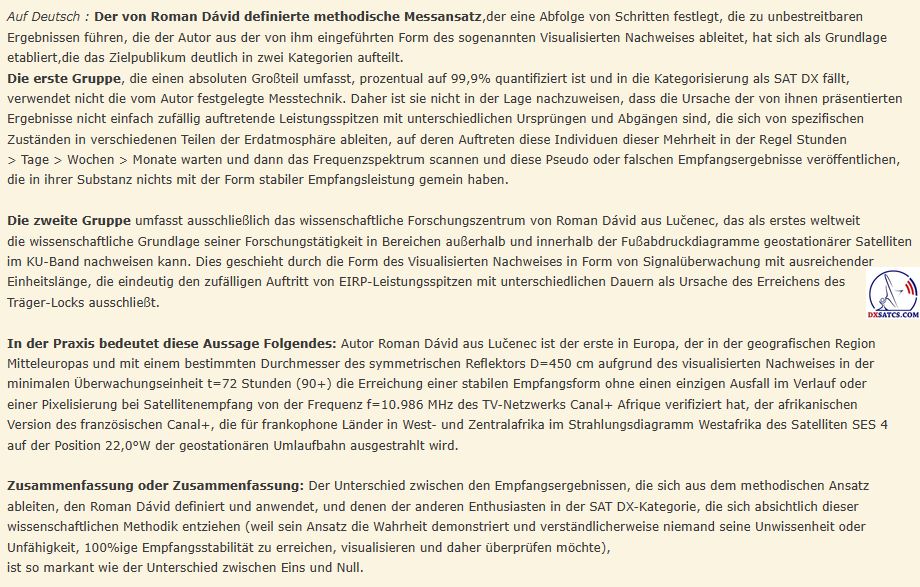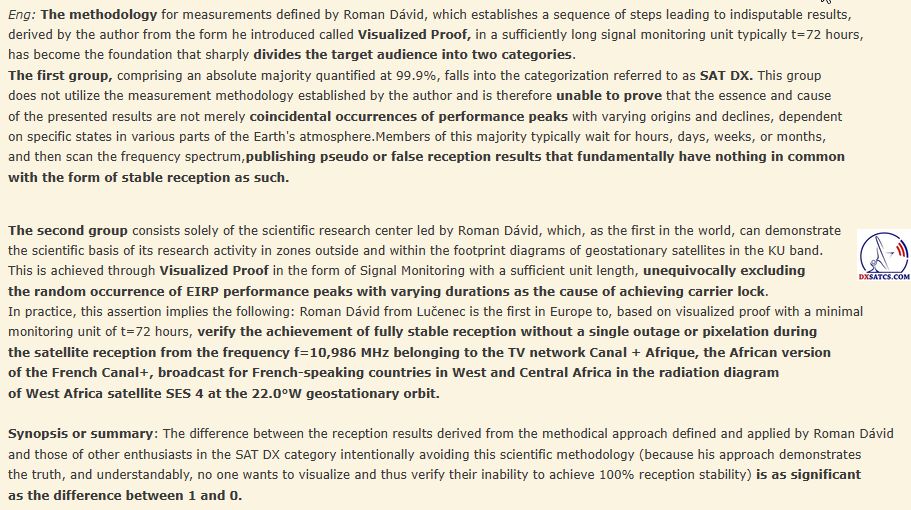 that come  exclusively from scientific research conducted by Roman Dávid - the author and the owner of www.dxsatcs.com. All the information found on