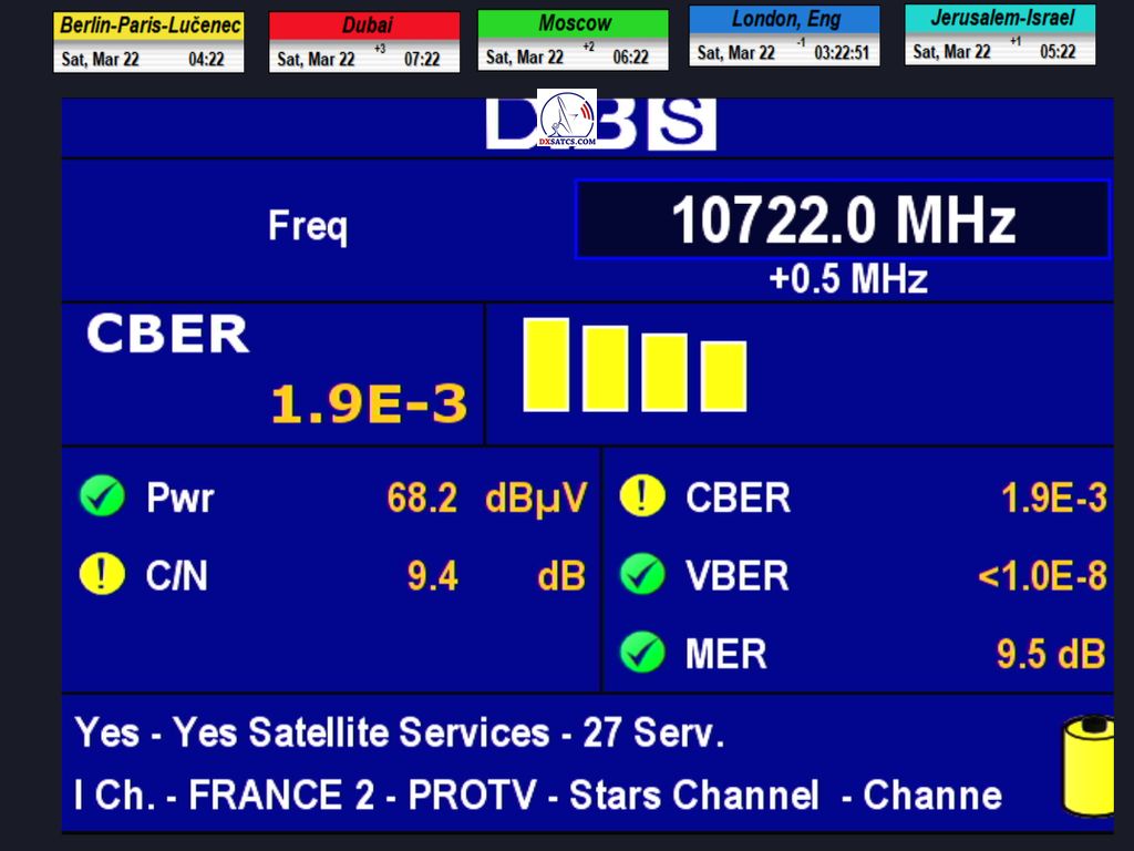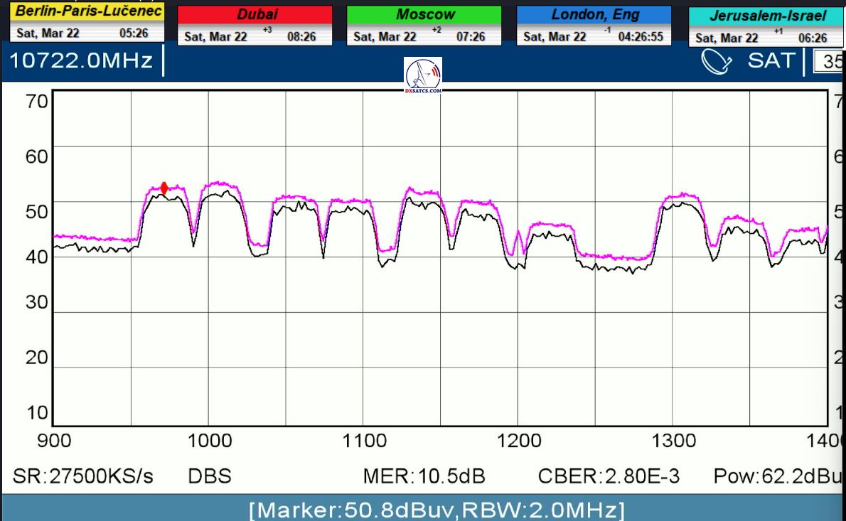 MER=10,3 dB (signálna rezerva 4,3 dB) -YES Satellite service- MER=10,5 dB _ (signálna rezerva 4,5 dB)