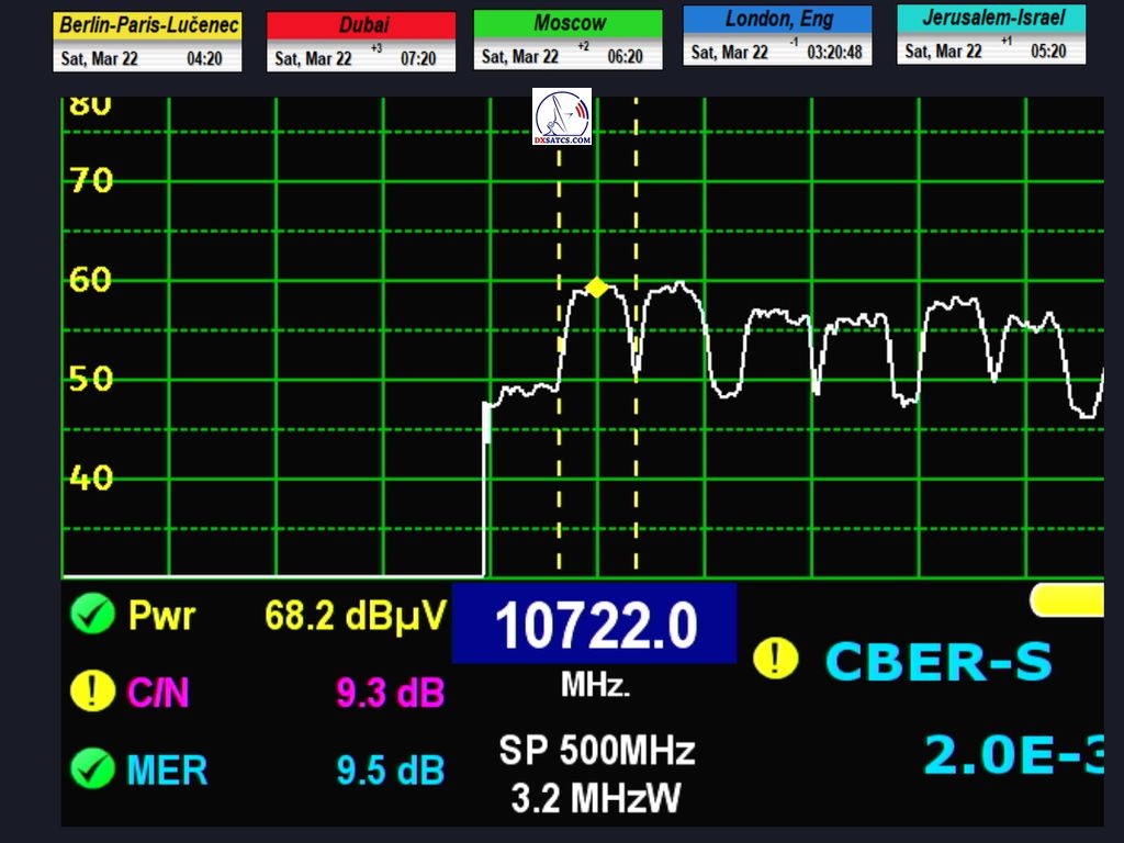 ►►Amos 3 at 4.0°W-Middle East-10 722 MHz-V_YES Israel : Analysis of signal monitoring over a duration of t=80 hours