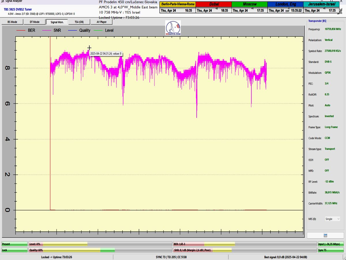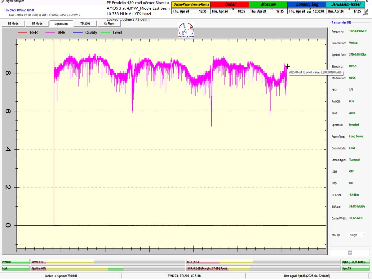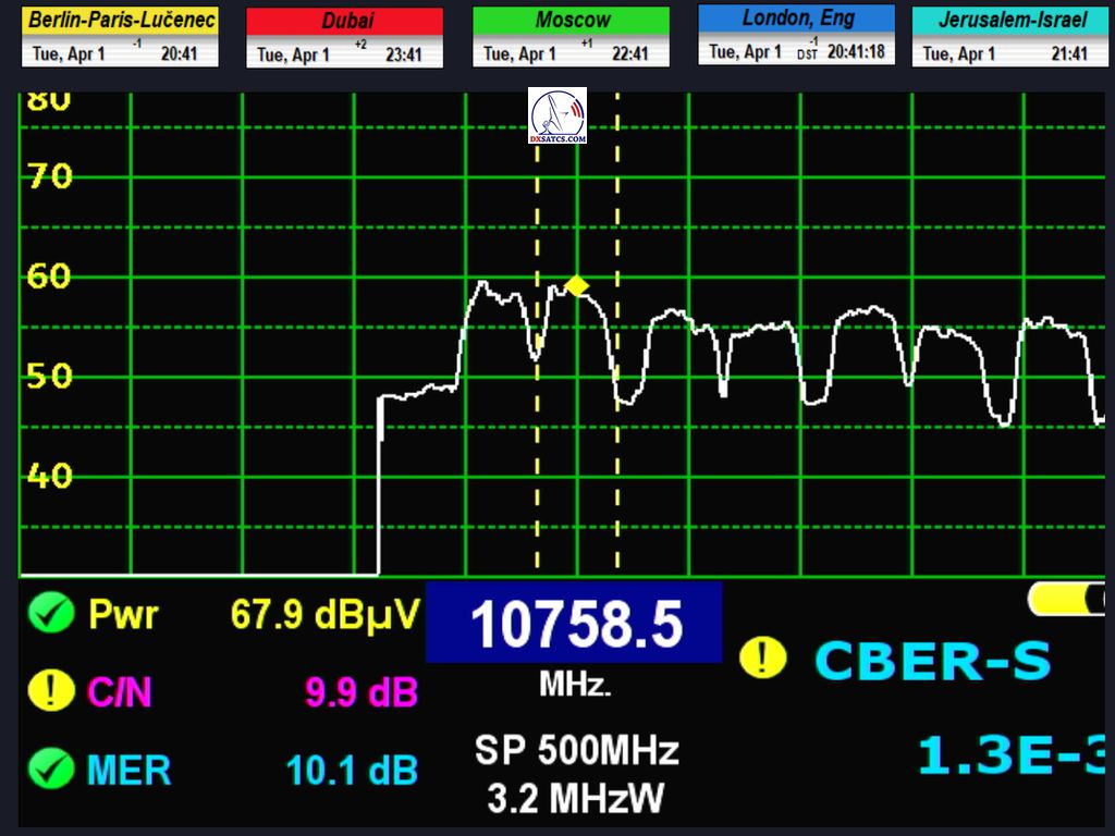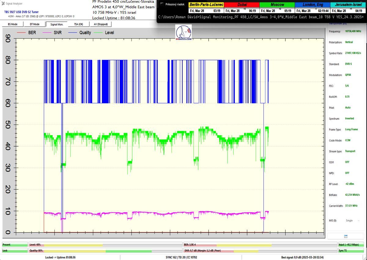 ►►Amos 3 at 4.0°W-Middle East-10 758 MHz-V_YES Israel : Analysis of signal monitoring over a duration of t=73 hours