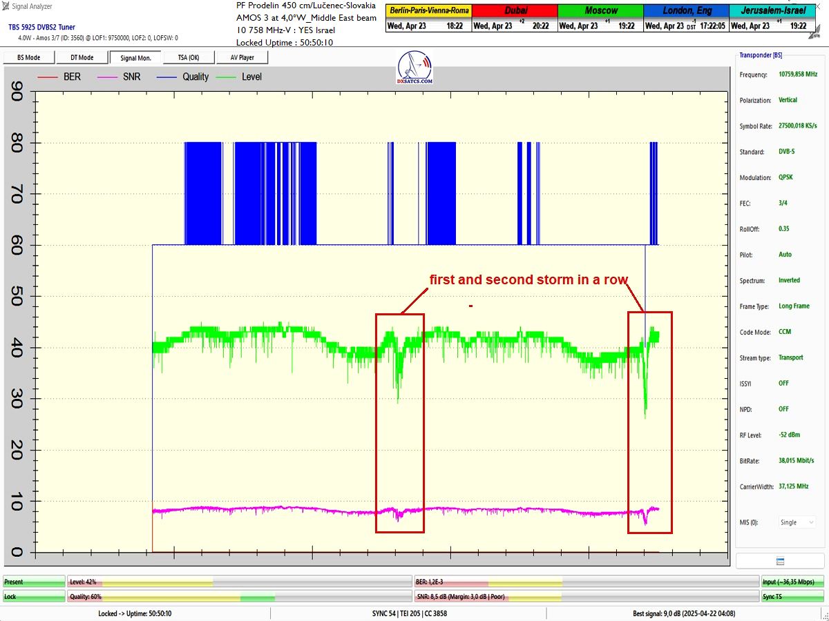 -okamžitá kvalita osciluje okolo: SNR=8,3-8,5 dB - pár minút po búrke v mieste príjmu ,ale ani len jedna pixelácia,alebo zamrznutie