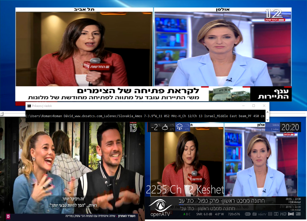 ►11 052 MHz _H_ Channel 12 Keshet + Ch 13 Reshet Izrael : 24/7_ stabilný LOCK nosnej každý deň aj pri výrazne