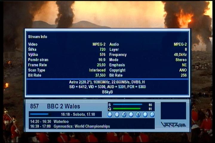 Astra 2D at 28.2°E - H+V_North footprint : qualitative analysis of the reception the BBC television network, ITV, SKY