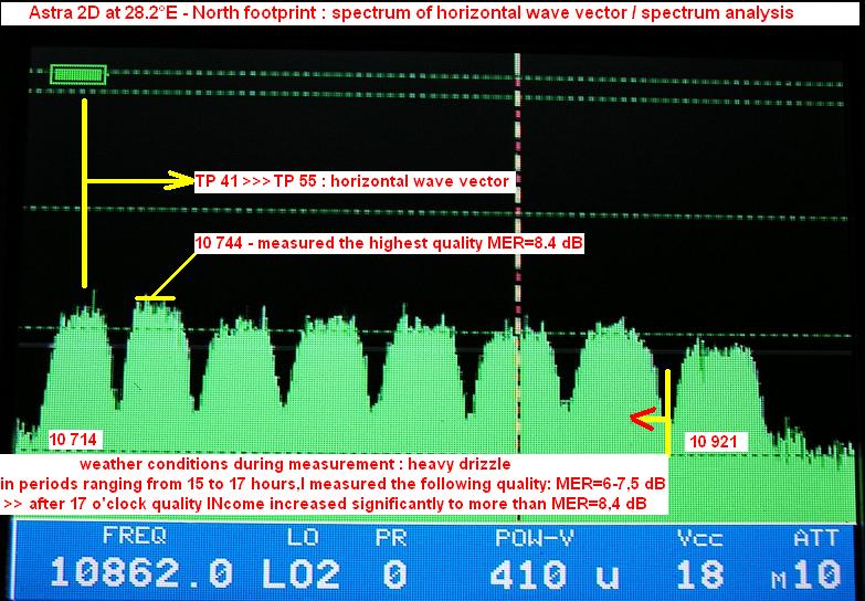 Astra 2D at 28.2°E - H+V North footprint : Radiating diagram & spectrum analysis & quality analysis of reception
