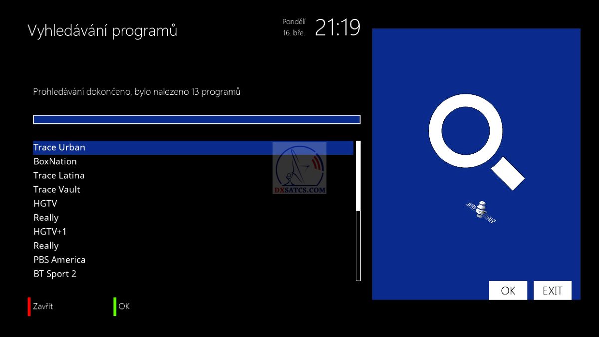 na transpondéte TP č.34 @ f=12 363 MHz v britskom vyžarovacom lúči geostacionárneho objektu Astra 2F.