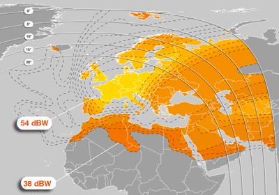 Atlantic Bird 2 & Telecom 2D at 8,0°W footprint : European/France/Middle East beam