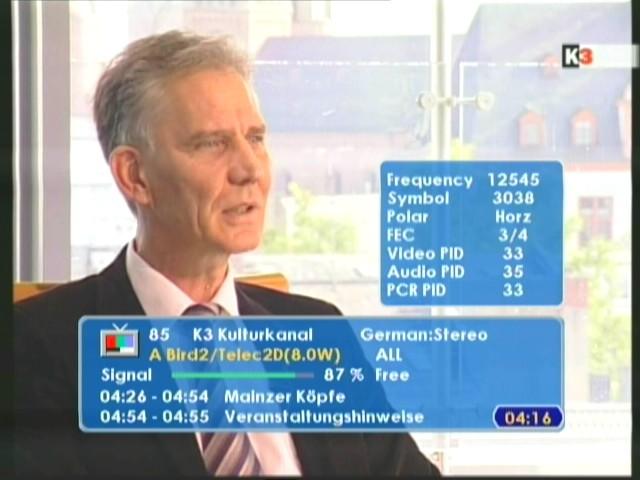 K3 Kulturkanal | 3 038 | 3/4 | Spot 1 | 80-140+ cm | FTA |