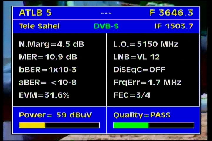 Atlantic Bird 3 at 5.0°W - panatlantic footprint : 3 646 R Télé Sahel