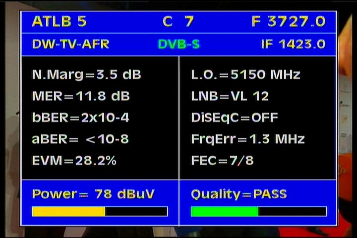 Atlantic Bird 3 at 5.0°W - panatlantic footprint : 3 656 R KTN Kenya