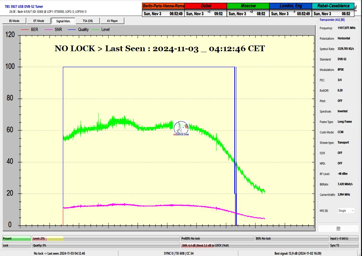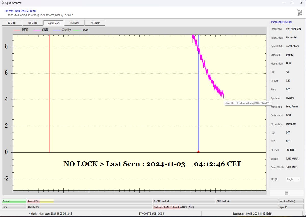 --- NO LOCK  > Last Seen 04:12:46 CET ---