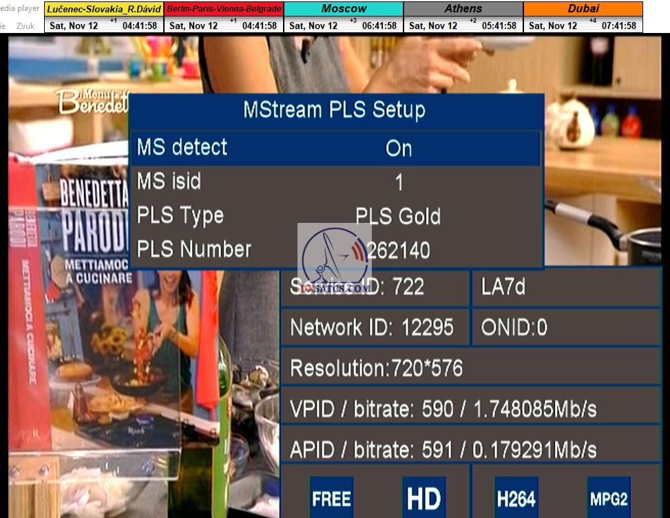 > PARAMETRE PRENOSU : DVB-S2 _ 8APSK _ SR=31 400 _ FEC=5/6 _ PLS Gold 0 _ Multistream 33-35-36 <