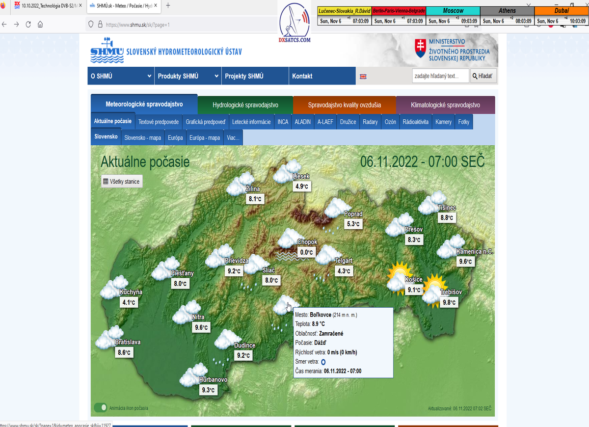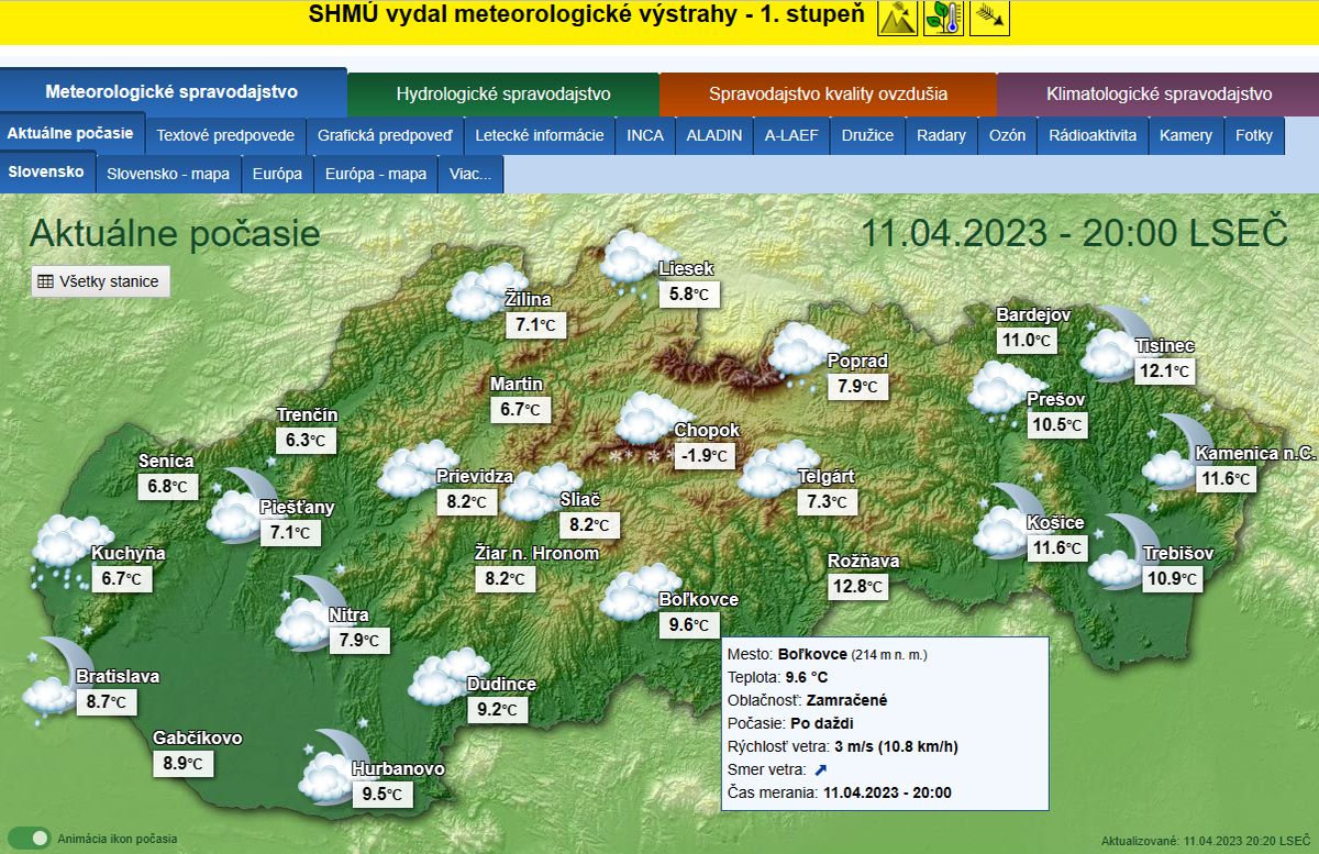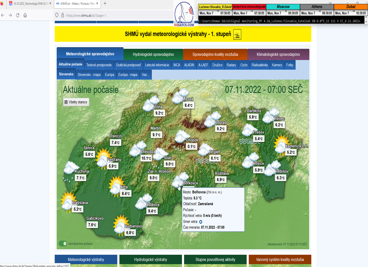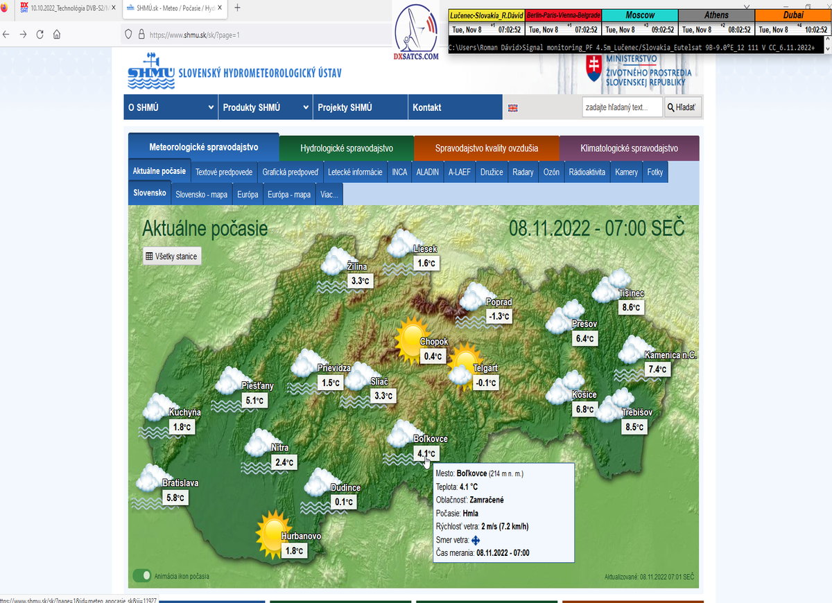 -o 7:00 ráno dňa 7.11.2022 boli publikované prvé dáta o aktuálnych poveternostných podmienkach z shmu.sk : Takmer zamračené  8/8
