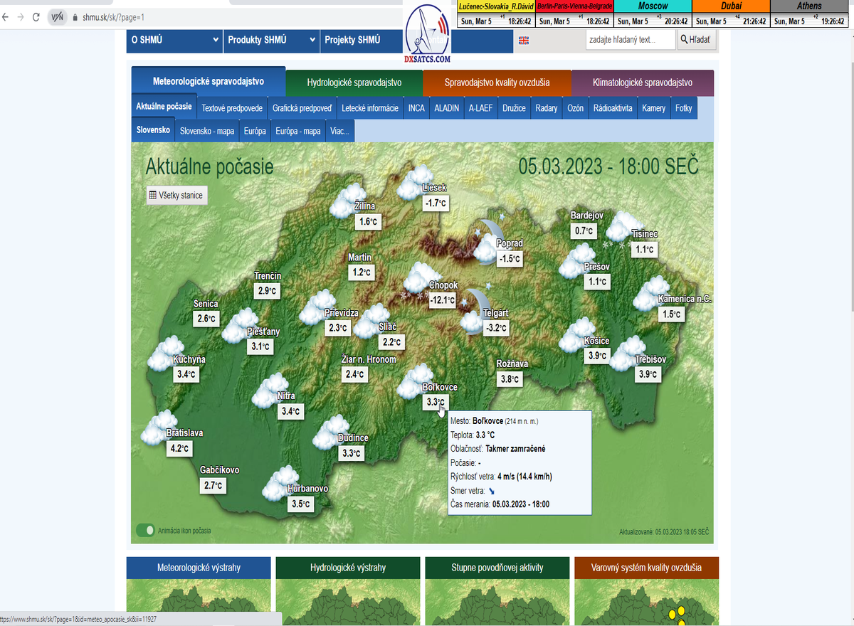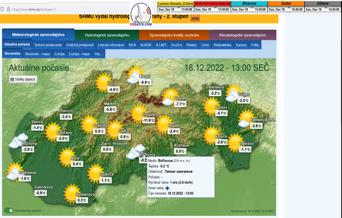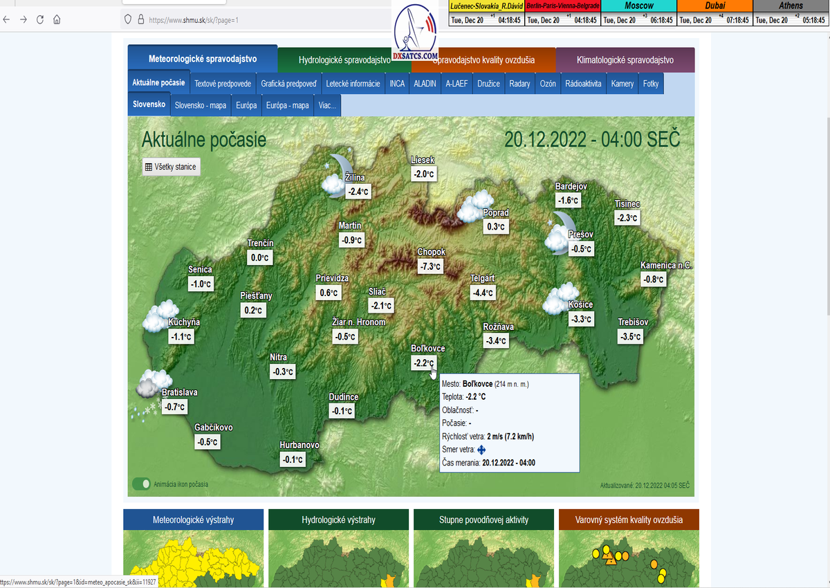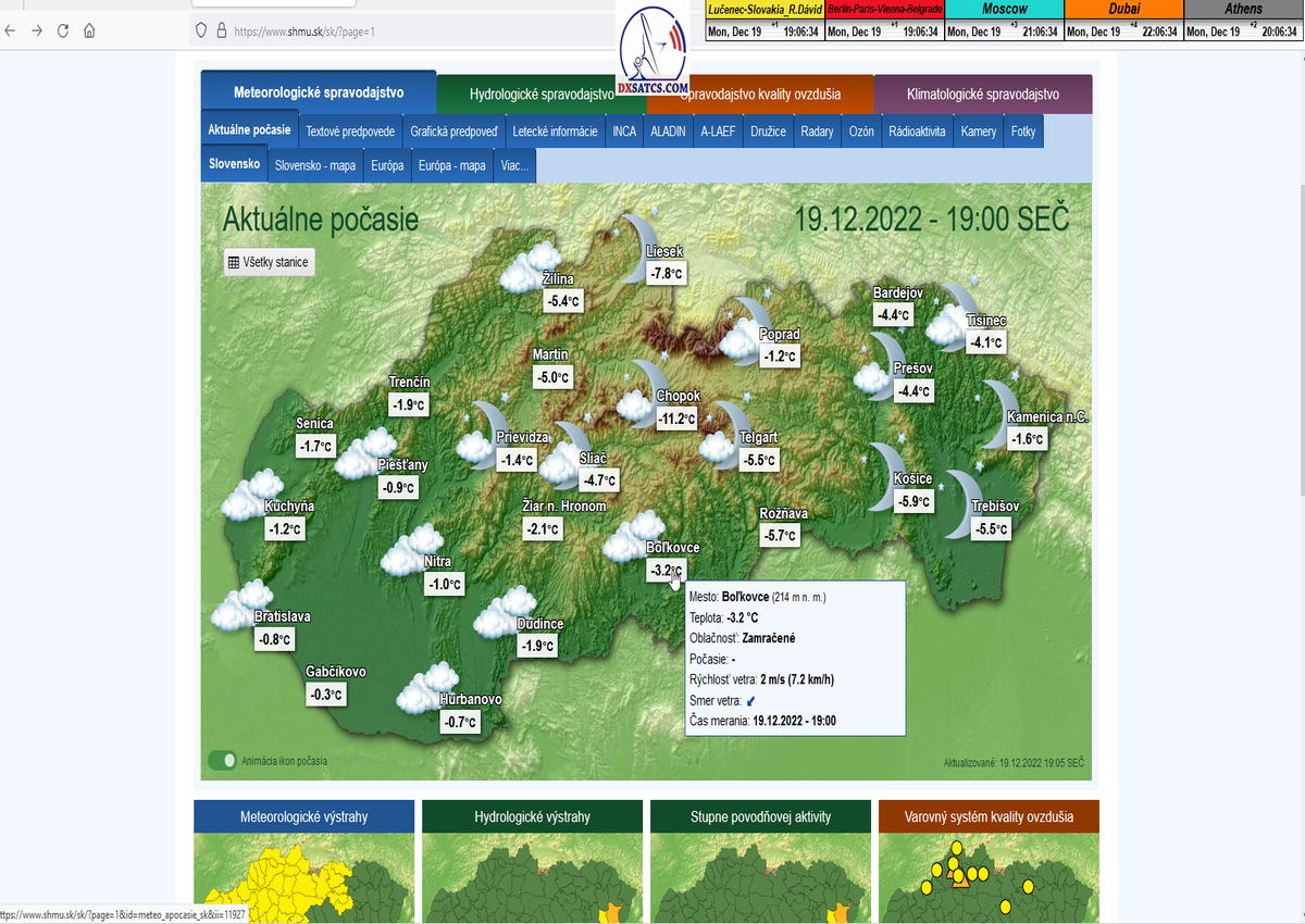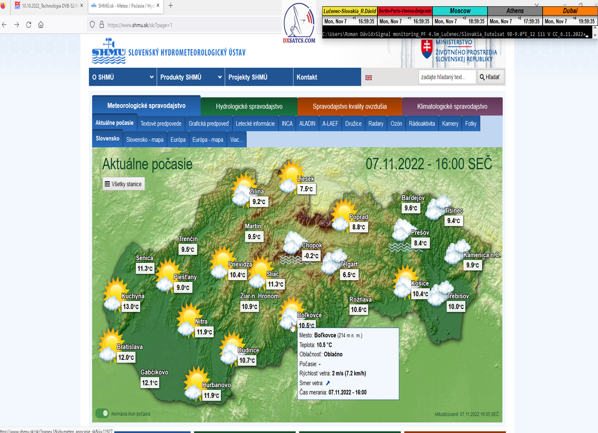 -o 7:00 ráno dňa 7.11.2022 boli publikované prvé dáta o aktuálnych poveternostných podmienkach z shmu.sk : Takmer zamračené  8/8