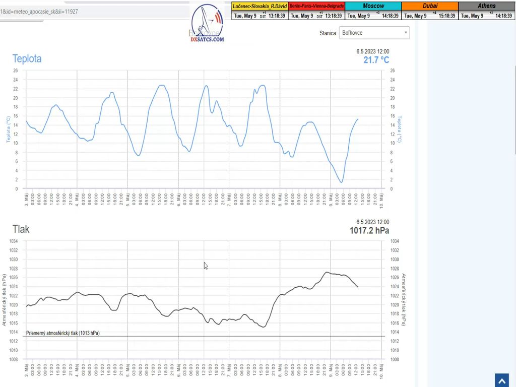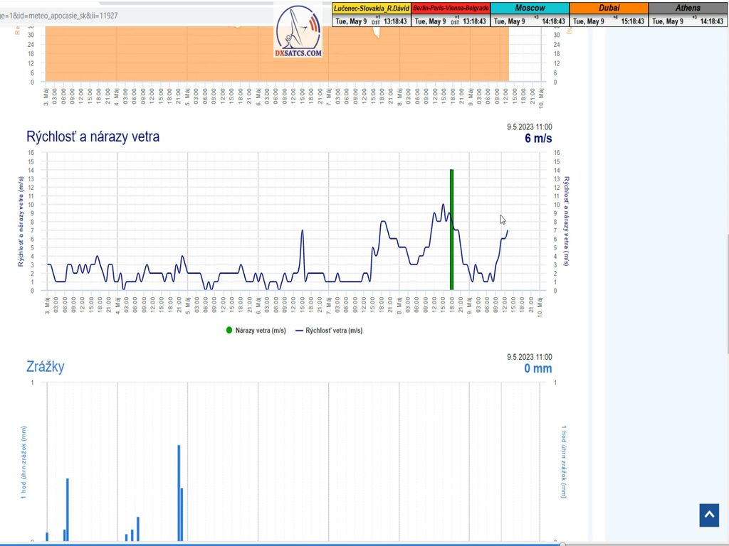 Stav atmosféry : na základe meteogramov zo zdrojov shmu.sk môžem potvrdiť že počas troch monitorovaných úsekov od 7 do 9.5.2023 prevládalo jasno až polojasno bez zrážok,pri nadpriemerne vysokej rýchlosti vetra okolo 9 m/s dňa 8.5.2023 a vonkajšej teplote od 10 do 21°C.