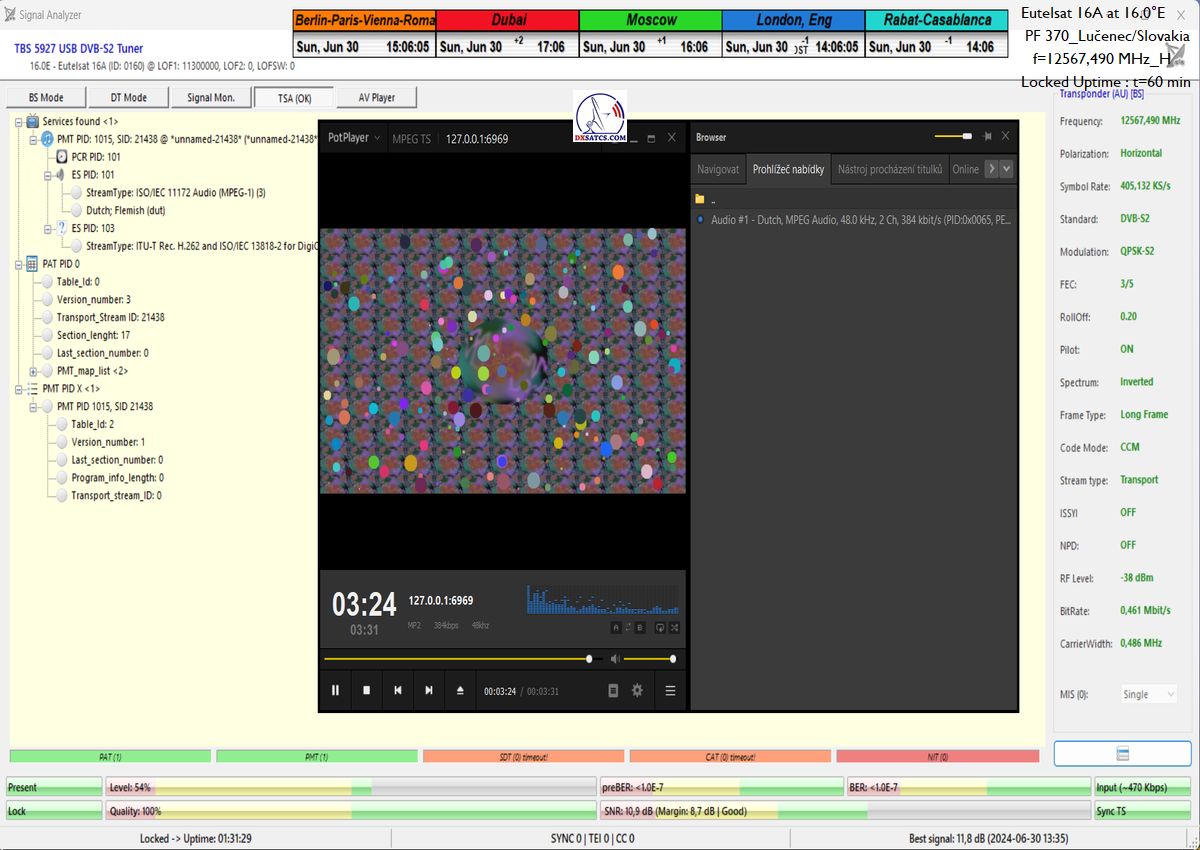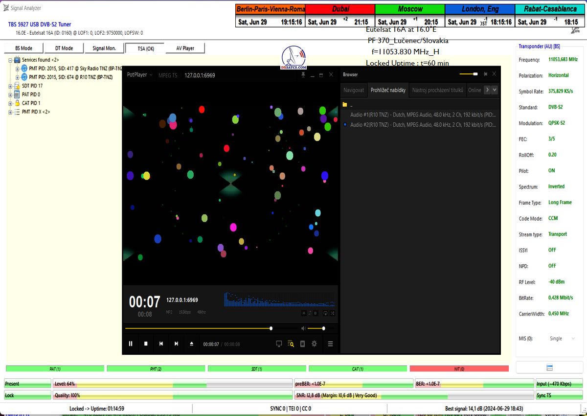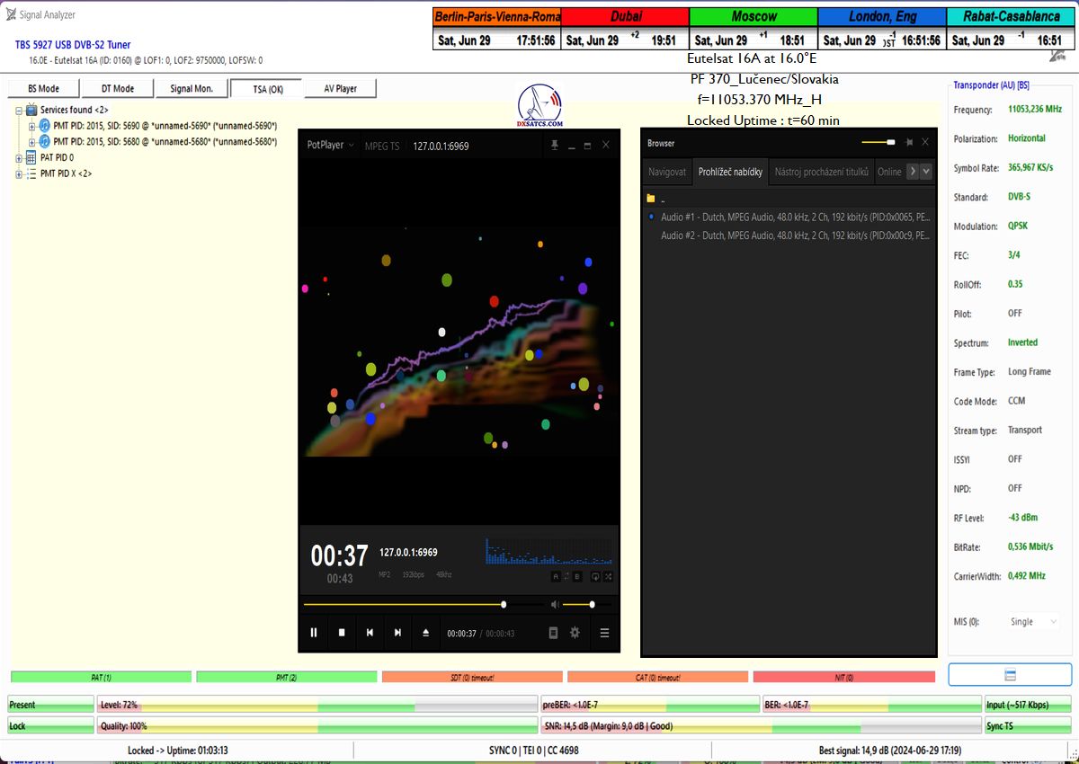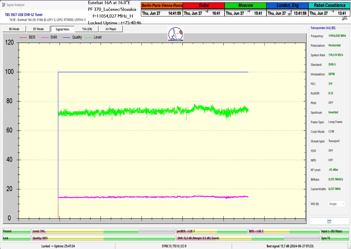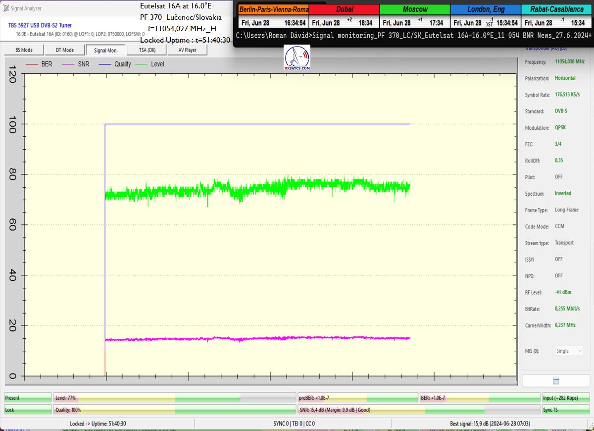 ►+25 hodín _ Priebežný stav v signálnom monitoringu dňa 27.6.2024 a online video ukážka z vysielania BNR Nieuwsradio _ TSA OK