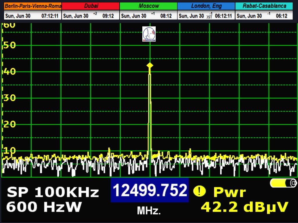 In meinen vorhergehenden Sätzen finden Sie die Antwort auf die Frage, warum ich nachfolgend zwei Frequenzen angebe. Die erste ist für die Verriegelung und die zweite ist die reale Frequenz, die vom Frequenzspektrum durch einen Televes-Analysator mit einem ultra-detaillierten Spektrumspan von nur SPAN=100 kHz identifiziert wurde. Dieses Parameter ist für die meisten Spektrumanalysatoren auf dem Markt unmöglich zu erreichen, und Träger mit einer Bandbreite von weniger als CW<100 kHz bleiben hinter dem Vorhang verborgen oder unsichtbar. Meine Bewunderung gilt den beiden Erstellern von SW-Analysatoren, die trotz der nur passiven und nicht "LIVE" Form der Spektrumanalyse das Frequenzspektrum auch mit Trägern mit einer noch schmaleren Bandbreite als CW=100 kHz erfolgreich quantifizieren können.