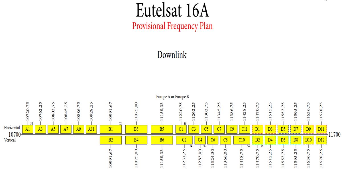 ►►►Eutelsat 16A at 16.0°E-Europe A beam : 2x Beacon frequency + TT&C_ Telemetry Tracking and comand