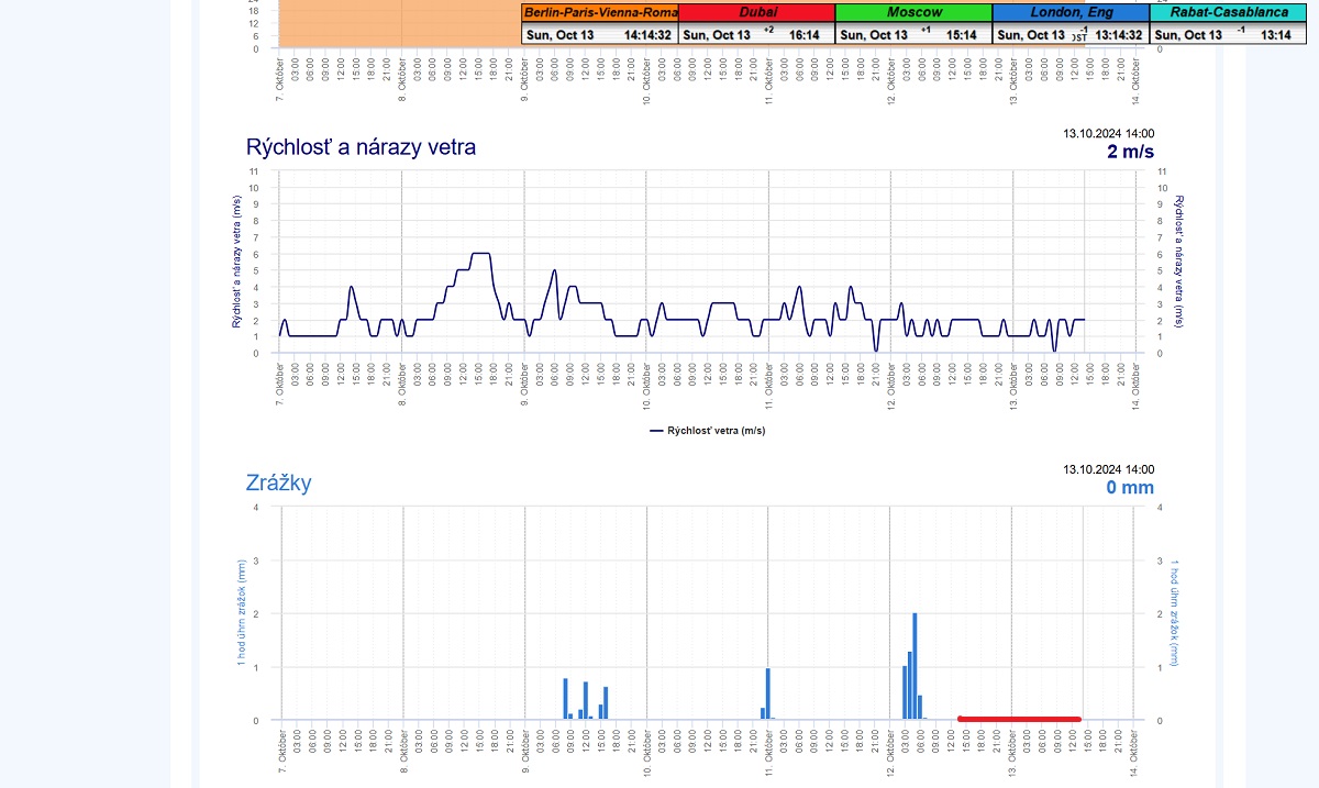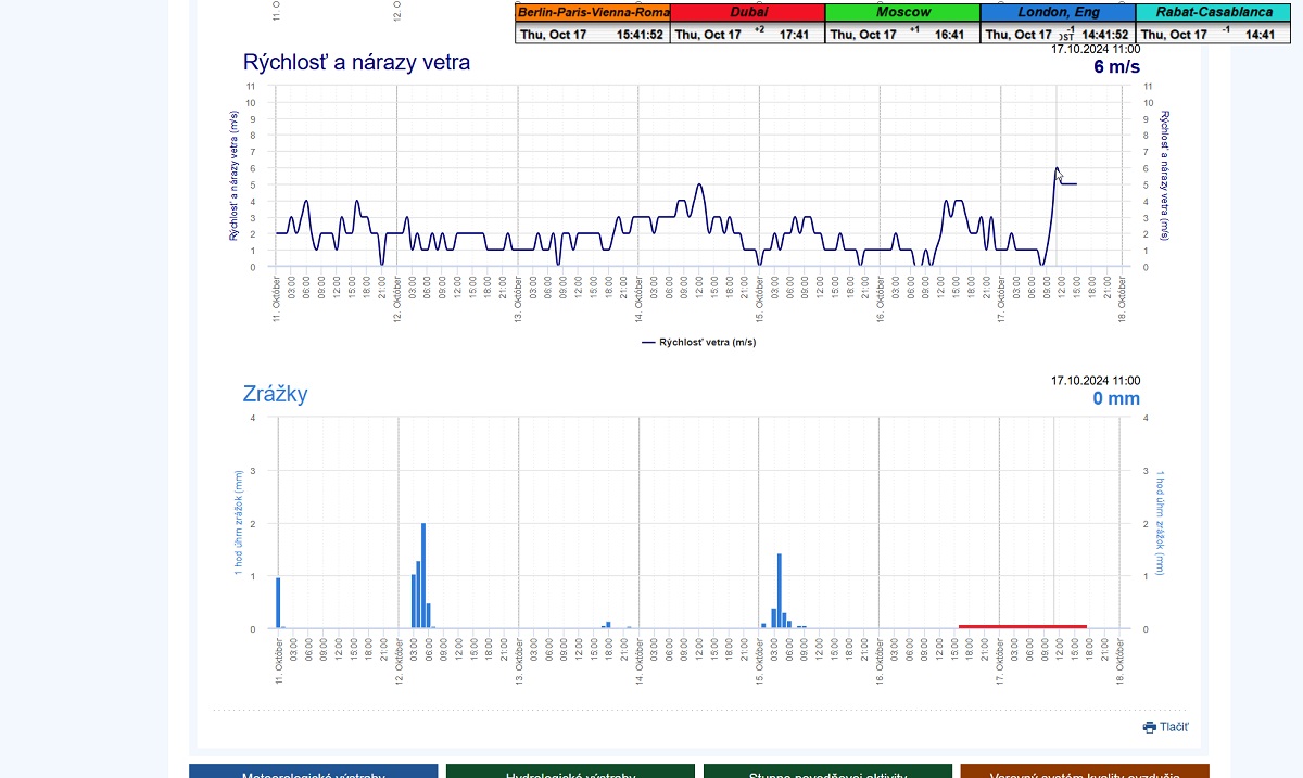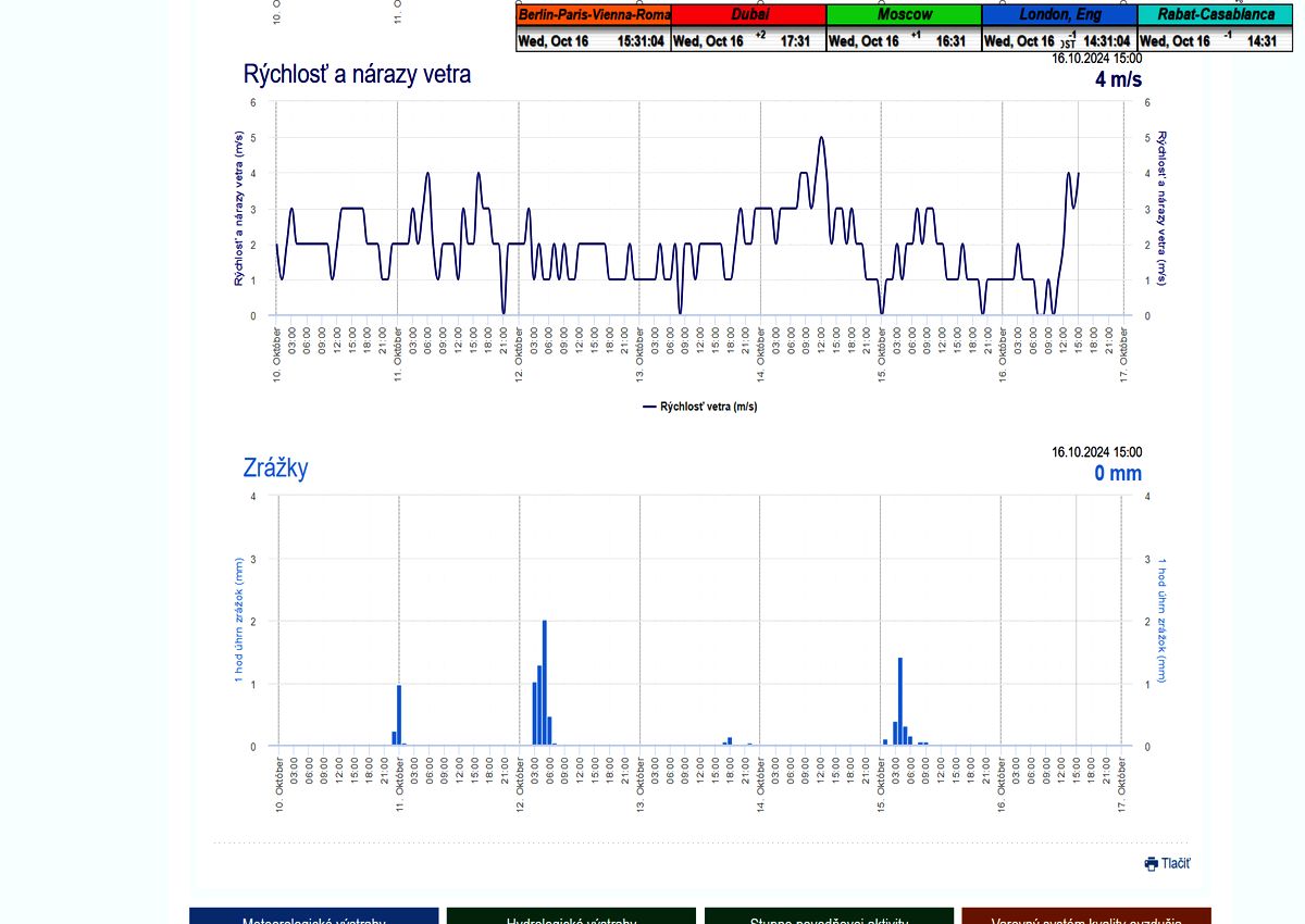 dažďové prehánky s nízkym úhrnom do 1,5mm/60 min. a pri maxime rýchlosti vetra okolo 5 m/s.Práve počas prehánok dňa 15.10.2024 o 6:07 ráno došlo