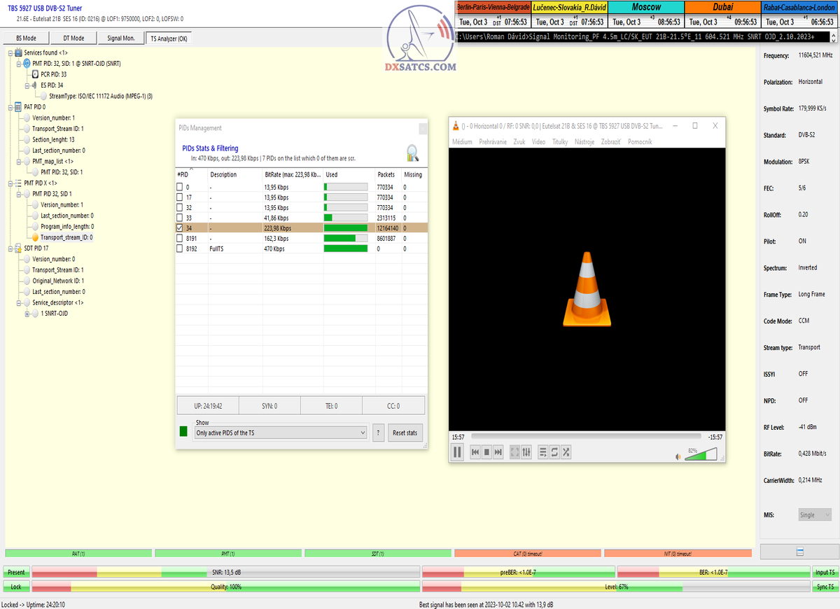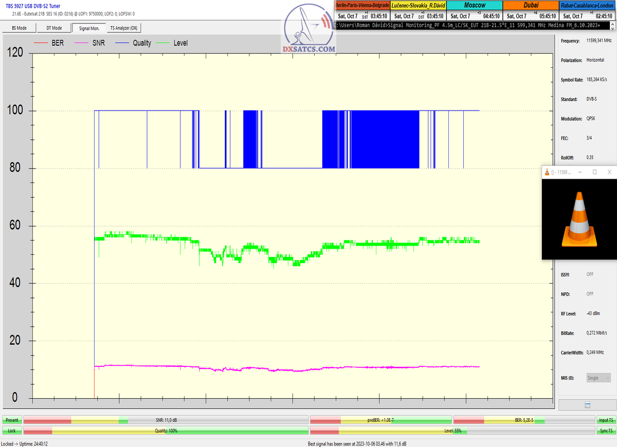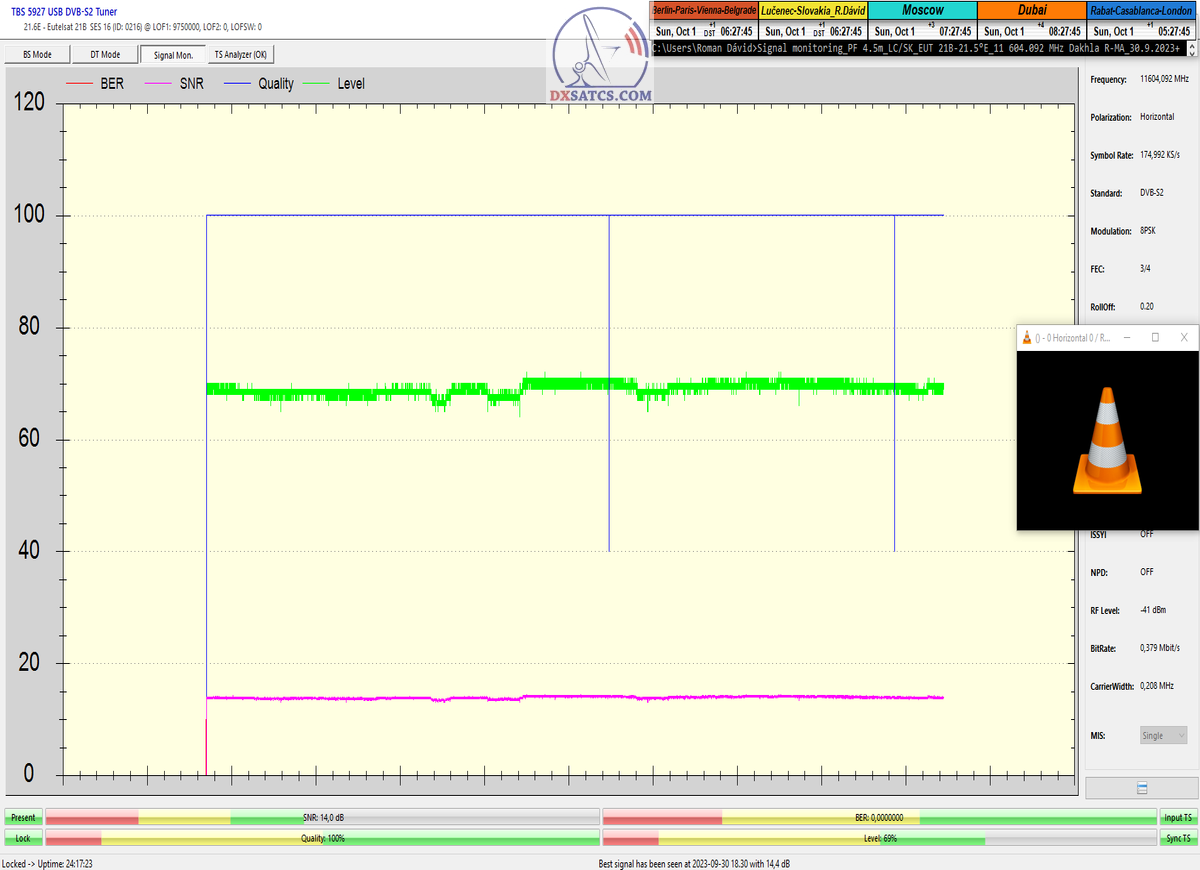 ďažďových prehánok dňa 30.9.2023 pri monitoringu rádio prenosu SNRT Dakhla s SR=175 Ksym/s.Zámerne som kvantitu monitoringu zdvojnásobil