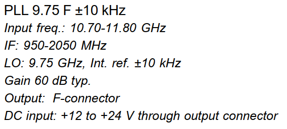 PF Prodelin 450 cm > Primárny žiarič > OMT SMW > LNB SMW PLL_10.70-11.80 GHz,LOF=9.75 GHz,Int. ref. ±10 kHz_Gain=60 dB