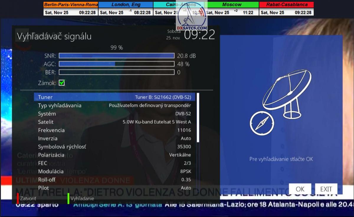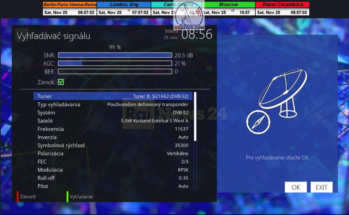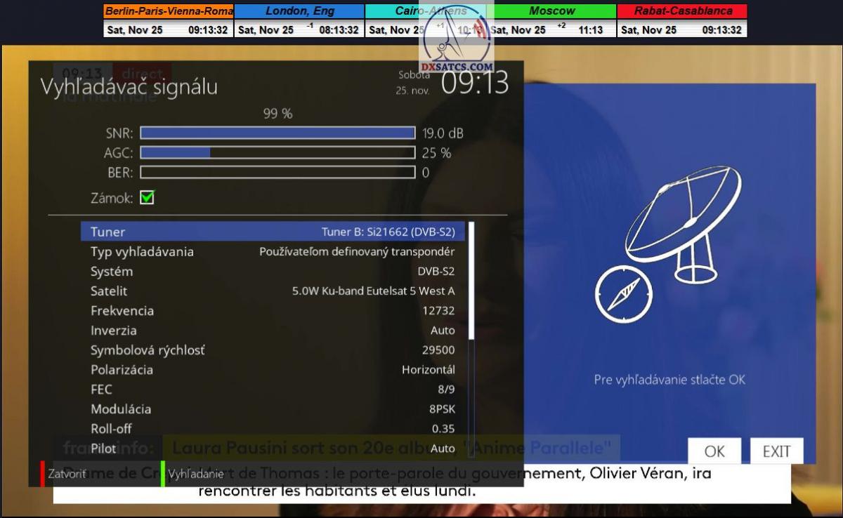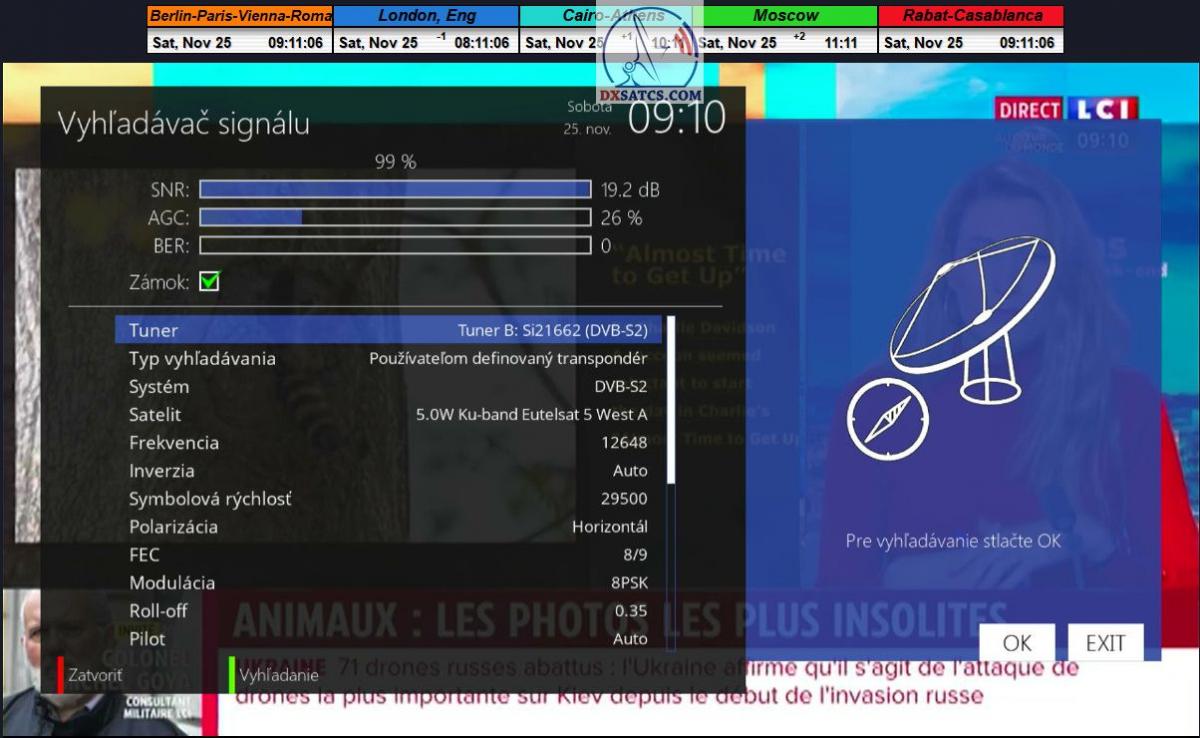 Na príklade dokazovania v podobe signálneho monitoringu paketov Rai a Canal+,vysielaných v technologickom štandarde DVB-S2/Multistream z objektu Eutelsat 5 West B na 5,0°W,Vám dnes dokážem že som účinne a hlavne stabilne transformoval relatívne vysokú intenzitu vyžiareného výkonu EIRP na výslednú kvalitu ,ktorú kvantifikujem pomerom signálu k šumu SNR=20>21+ dB-pri aplikovanej konfigurácii modulačných