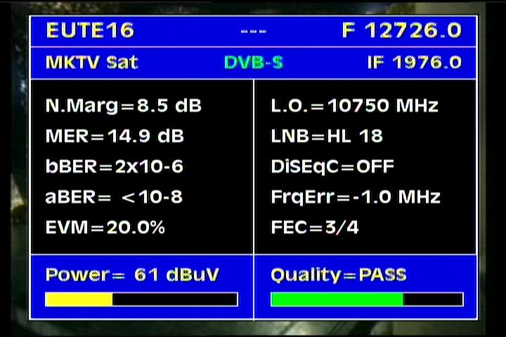 quality of Mer=15-18 dB for each in the range of vectors V and H present carrier transmission,which means a real increase in gain to the