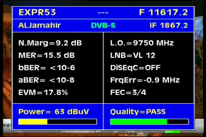 --- express am22 at 53.0°e-S1 beam : 12 666 V Nilesat netw. Egypt-quality peak MER=12.2 dB ---