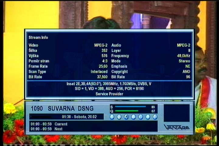 Insat 2E na 83.0°E - wide footprint in C band : feeds_3 995 V Suvarna DSNG