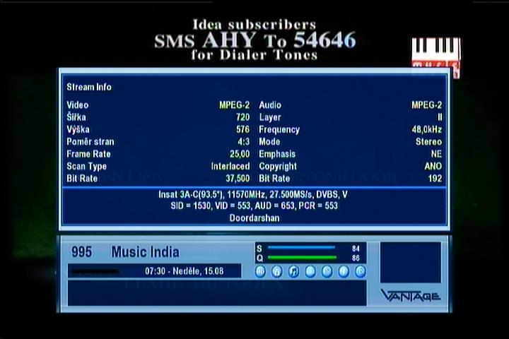 Insat 4B at 93.5°E Indian subcontinent beam : 11 669 V HDTV Packet SUN DTH Network India