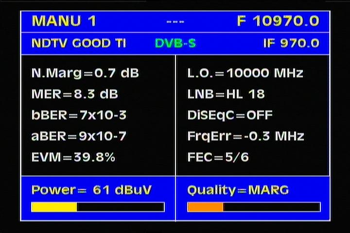 -- treshold levels for the FEC protocols : 3/4 > MER=4.0+ dB ___ 5/6 > MER=5.0+ dB --