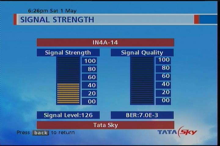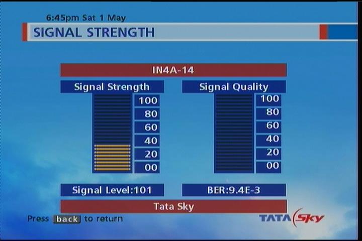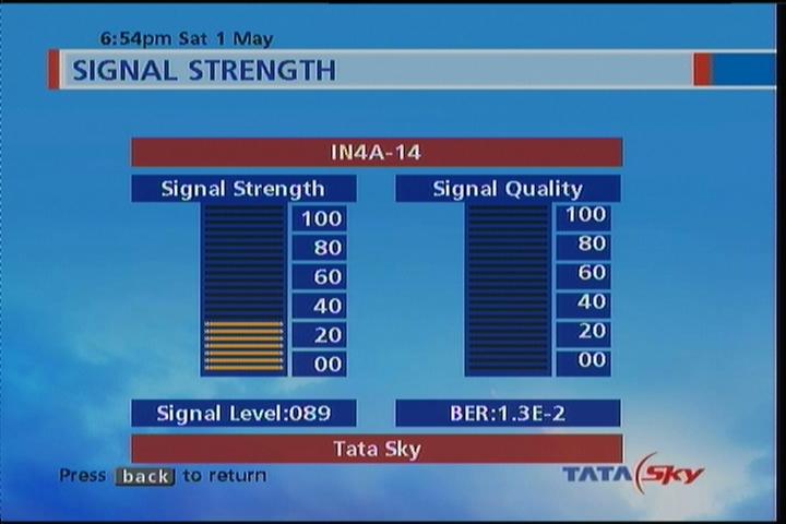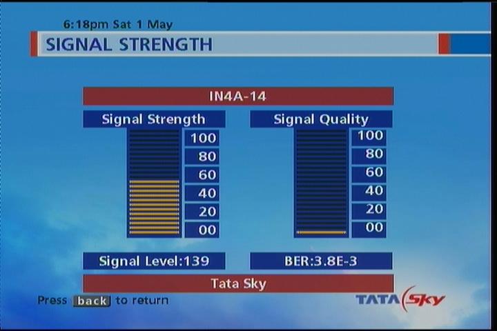 Insat 4A at 83.0°E - footprint in KU band - TATA Sky : LIVE measurement results