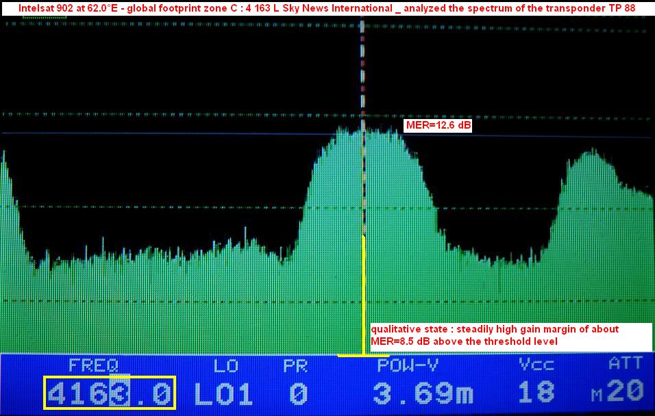 Intelsat 902 at 62.0°E - global footprint : still a steady high level of gain margin of around MER=8.5 dB