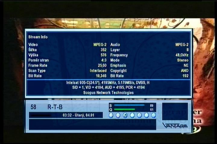Intelsat 905 at 24.5°W - Global footprint : measurements at the center Lučenec_central Slovakia