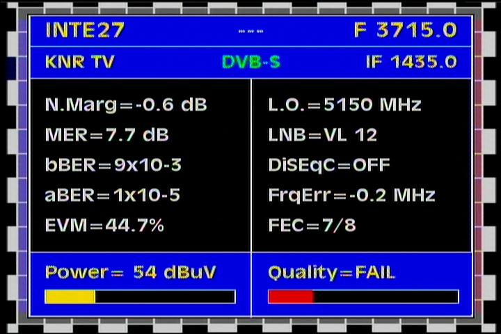 DVB-S2/EVM=35.5% : EVM value clearly determines that the value of the voltage levels of demodulated symbols in QPSK