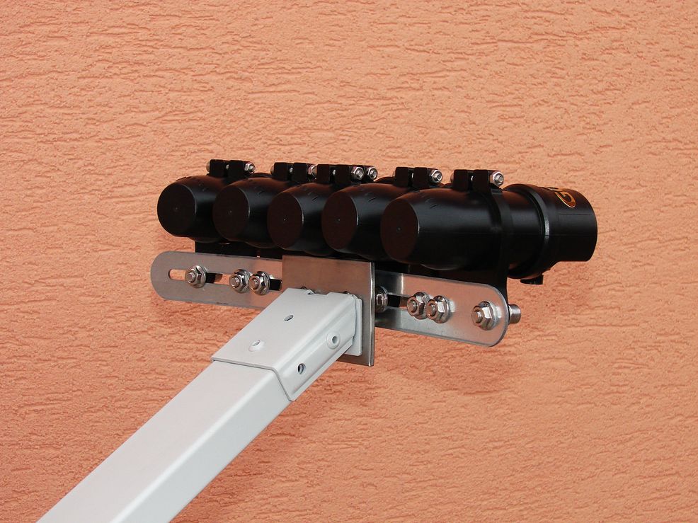 Príjemným a užitočným doplnkom je existencia držiaka na zadnej časti závesu,v ktorom je vložený imbus kľúč potrebný pre uchytenie držiaku LNB.V tesnej blízkosti je integrovaná sťahovacia páska(fixovanie inštal.doplnkov).Zásadnými zmenami prešlo prevedenie ramena LNB.Pôvodný systém zaistenia pomocou dvoch skrutiek bol nahradený jednou skrutkou a rozdielnym prevedením vloženia do závesu.Hlavička skrutky je v plastovom prevedení,čím odpadá nutnosť použitia nástroja a zaistenie je tak možné vykonať mechanicky (ručne).Otvor pre zaisťovaciu skrutku je umiestnený vo výššej časti labute,čím sa fyzicky zväčšil priestor pre príp.kabeláž vedenú vnútorným priestorom.Ukončenie zo strany držiaku LNB je riešené zanitovaním mech.prvku s dvoma otvormi pre závit M5 a konštrukčnou prípravou pre mech.zaistenie držiaku LNB.Týmto typom prevedenia výrobca minimalizoval možné stavy mech.znehodnotenia (deformácie ) ramena v prípade prevedenia zaistenia pomocou skrutiek (nadmerná sila pri zaisťovaní ).Samotný držiak LNB je v prevedení liatinového zámkovitého typu,kedy sa pomocou skrutky s imbusovou hlavou zaisťuje a otvára zámok držiaku LNB.Dômyselne je na druhej strane zaisť.skrutky umiestnená plastová podložka,ktorá zabraňuje vypadnutiu skrutky pri zmene polohy vrchnej časti držiaka.Systém zaistenia držiaka LNB ku ramenu je v tzv.sťahovacom prevedení.Pred vložením je nutné povoliť imbusovým kľúčom zo spodnej časti držiaka zaisťovaciu skrutku