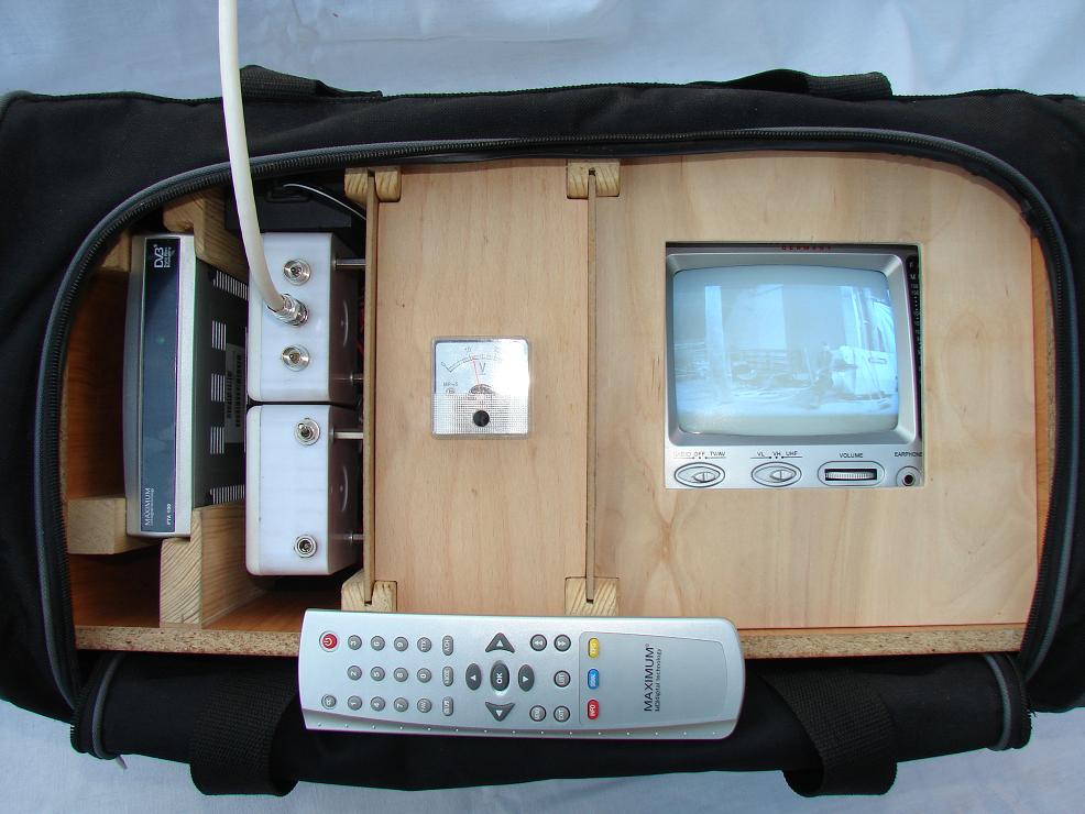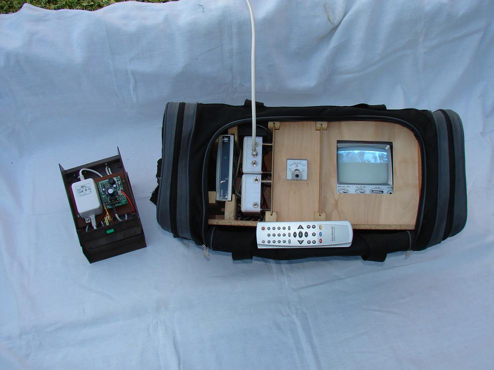 Po predbežnom vzájomnom prepojení jednotlivých dielov zariadenia vyplynula nutnost umiestnit ich do rozmerovo prijatelneho obalu.Kedže bolo nutné previest umiestnenie čo najspolahlivejšie a so zvýšenou odolnostou voči príp.otrasom a možným poškodeniam bolo preto jedným z materiálov vhodných pre výstavbu použité drevo,t.j drevotrieska v kombinácii s preglejkou.Konštrukcia pozostáva z jednotlivých vzájomne pomocou medzistien oddelených dielov,ktoré su rozoberatelné.Vstupný konektor zo sat konvertora je umiestnený na jednej z plastovýh krabíc.dalšia obsahuje prepínač pre prevádzku s dvoma polohami,pričom v jednej z poloh je zabezpečená prevádzka v druhej je prístroj v nabíjacom režime,povedla umiestnený vstupný konektor pre nab.zariadenie..Vzájomné prepojenia medzi akumulátorom a jednotlivými prvkami realizované pomocou svorkovnice umiestnenej v plastovej krabici.V strede nad akumulátorom umiestnený kontrolný ručičkový panel pre kontrolu napatia na výstupných svorkách akumulátora.Kedže jednou z prirodzených vlastností akumulátora je ubytok kapacity bolo potrebné vytvorit nabíjacie zariadenie pomocou ktorého sa spomenuté straty eliminuju pravidelným dobíjaním.Konštrukcia vytvorená z elektronickej časti zab.zariadenia spolu s transormátorom zodpovedajucich hodnot.Jednou z výhodných vlastností je schopnost neprekročit príslušné hodnoty a nepoškodit tak akum.príp.prebíjaním.Zariadenie umiestnené v plastovej inštalačnej krabici pozostávajucej z dvoch dielov.Dodatočne na prednom paneli umiestnený hlavný vypínač spolu s indikačnou letdiodou,v zadnej časti výstupný konektor a vstup pre sietovu šnuru.Jedna z mnohých funkcií sat.receivera umožnuje pomocou indikátora urovne signálu vyjadrenej v percentách previest nastavenie danej supravy na max.hodnoty.Dalej je možné prevádzat vdaka spomenutej tech.výbave kontroly diseqc prepínačov,príp.previest nastavenie ako fixnej tak aj otočnej supravy s diseqc motorom.