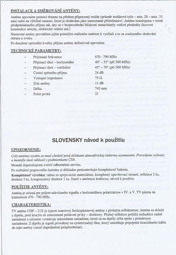 - Meracia anténa : Astra širokopásmová 3 prvky