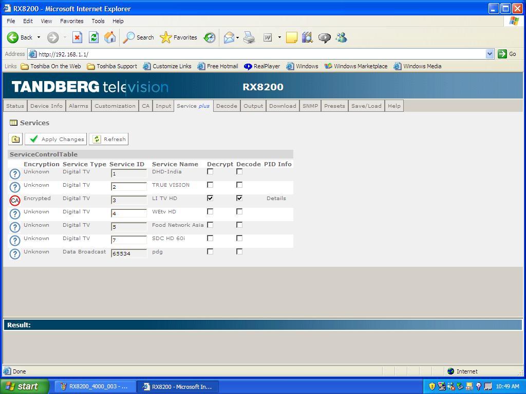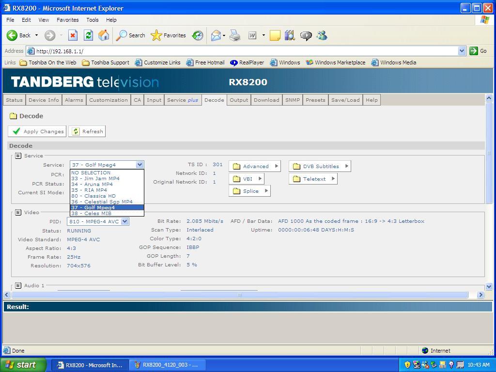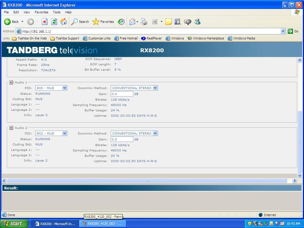 - Second packet : 4 120 H DVB-S2-8PSK-MPEG-4 Unnamed network -