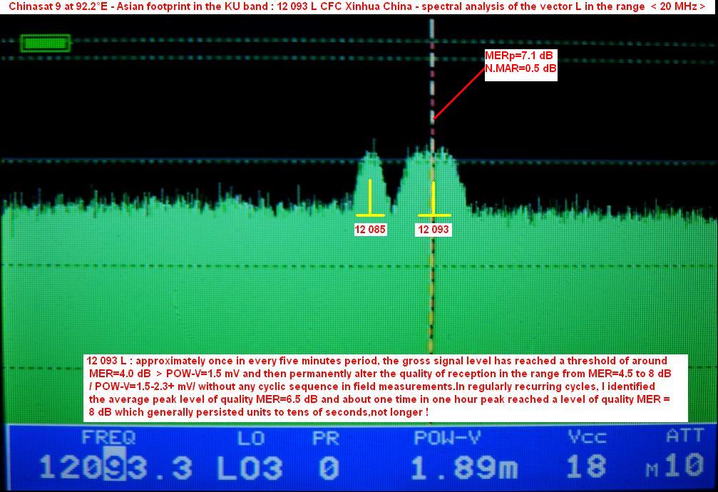 Chinasat 9 at 92.2°E - Asian footporint in KU band : 12 092 L Xinhua_measurement results of quality