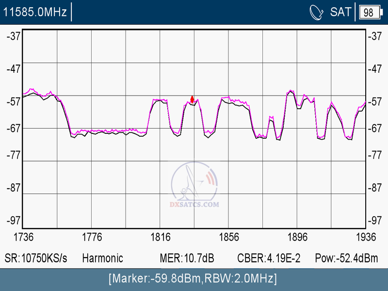 frekvenčnému prekrytiu aplikovanej šírky pásma nosných,čo v niektorých častiach európskej zóny vylučuje možnosť stabilného príjmu frekvencii f=11 585+11 610 H sústredených do vyžarovacieho diagramu Stredná Ázia.Dôkazom pravdivosti predchádzajúceho tvrdenia je fakt že spektrálnu aktivitu tv paketu