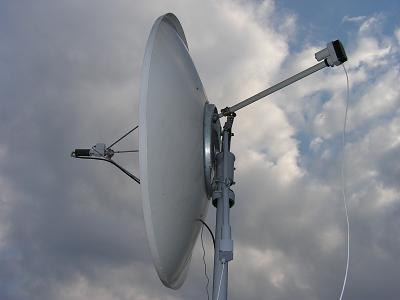 a,Stredová príjimacia anténa MABO priemeru 180 cm: Ešte pred umiestnením tejto antény na strechu som musel polárny záves kompletne prerobiť, aby vôbec bol schopný vytočiť východný limit okolo 100 ° pre jednoduché a komfortné ovládanie pomocou dvoch tiahlových motorov, kedže výrobca samozrejme nepredpokladal použitie jeho antény v takýchto extrémnych podmienkach. Všetky podstatné technické parametre použitej príjimacej antény som konkrétne popísal v článku DXxx vo VF spektre 12,5 GHz, družica ARABSAT 2B 30,5° východne.