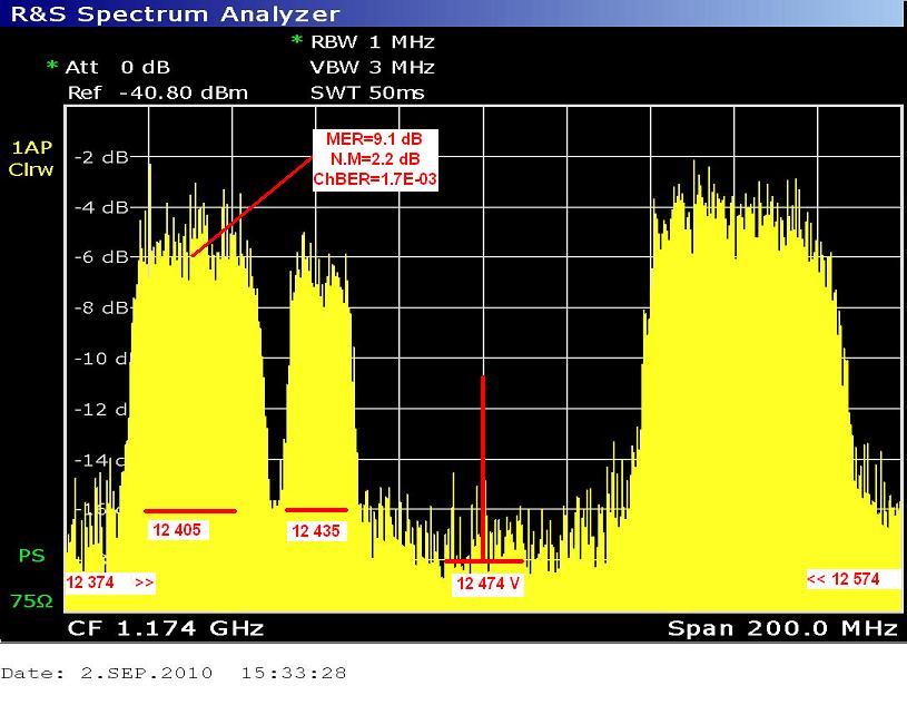 12 405 V : achieved quality 12 405 V : C/N=8.8 dB 12 4054 V : Channel Power