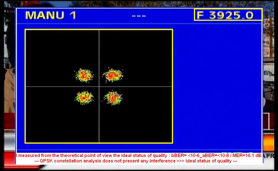 PF Prodelin 3.7 m 3 925 H : QPSK constellation diagram 3 925 H : QPSK/Quality analysis.