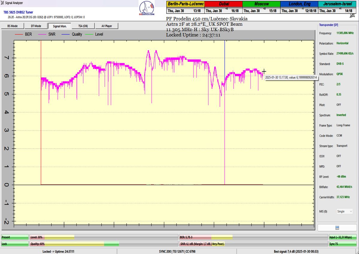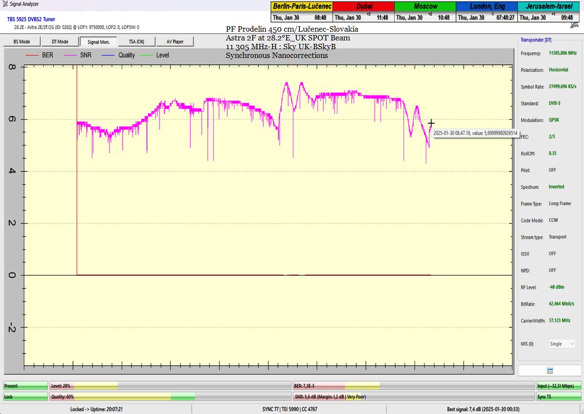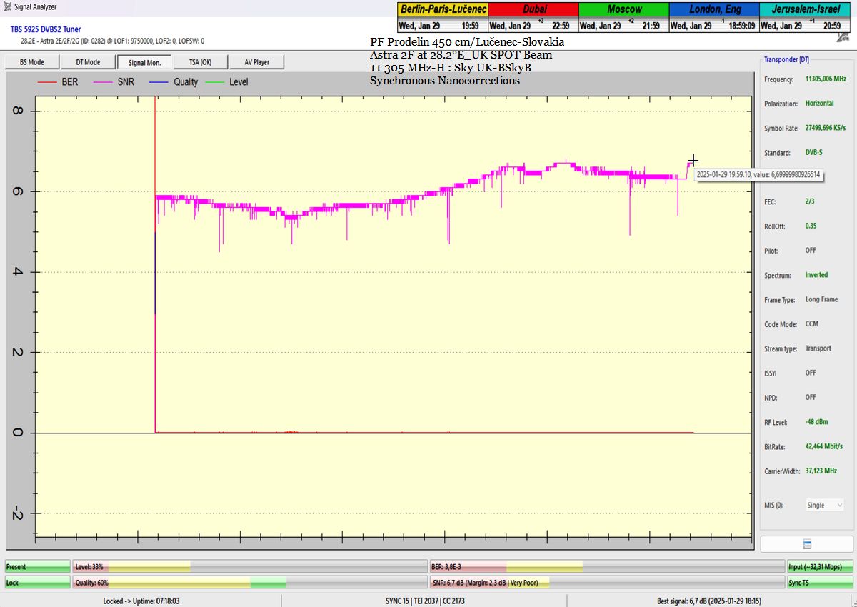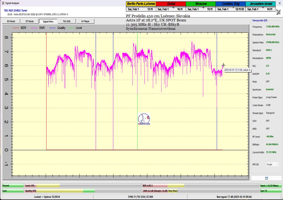 ►SK_Úspešná aplikácia môjho technologického vynálezu "Synchrónne nanokorekcie" na nosnej 11 305 MHz-H Sky UK-BSkyB a stabilita príjmu verifikovaná signálnym monitoringom v celkovej kvantite 102 hodín na juhu  stredného Slovenska