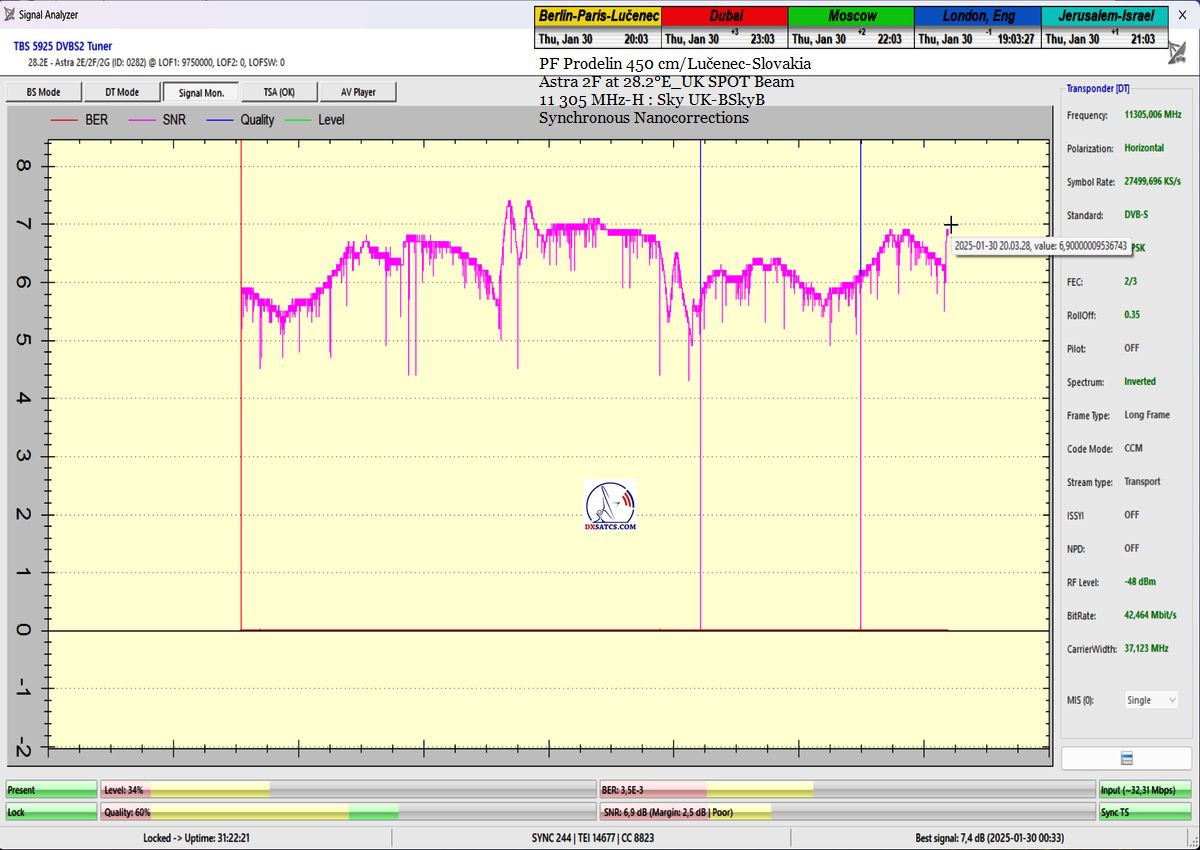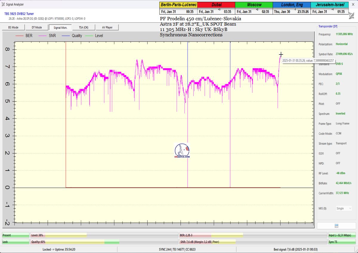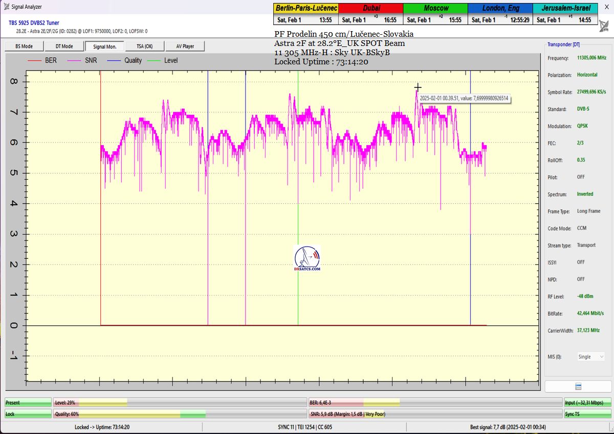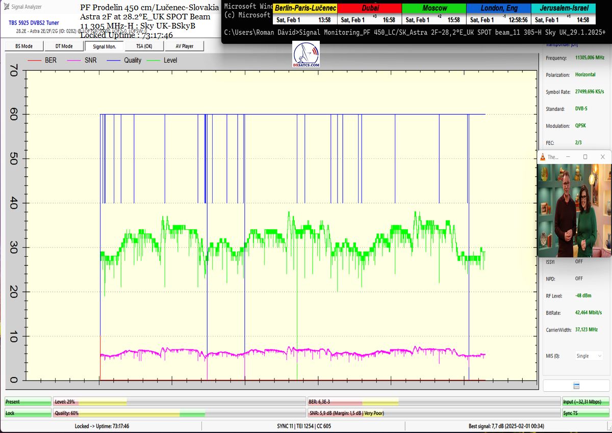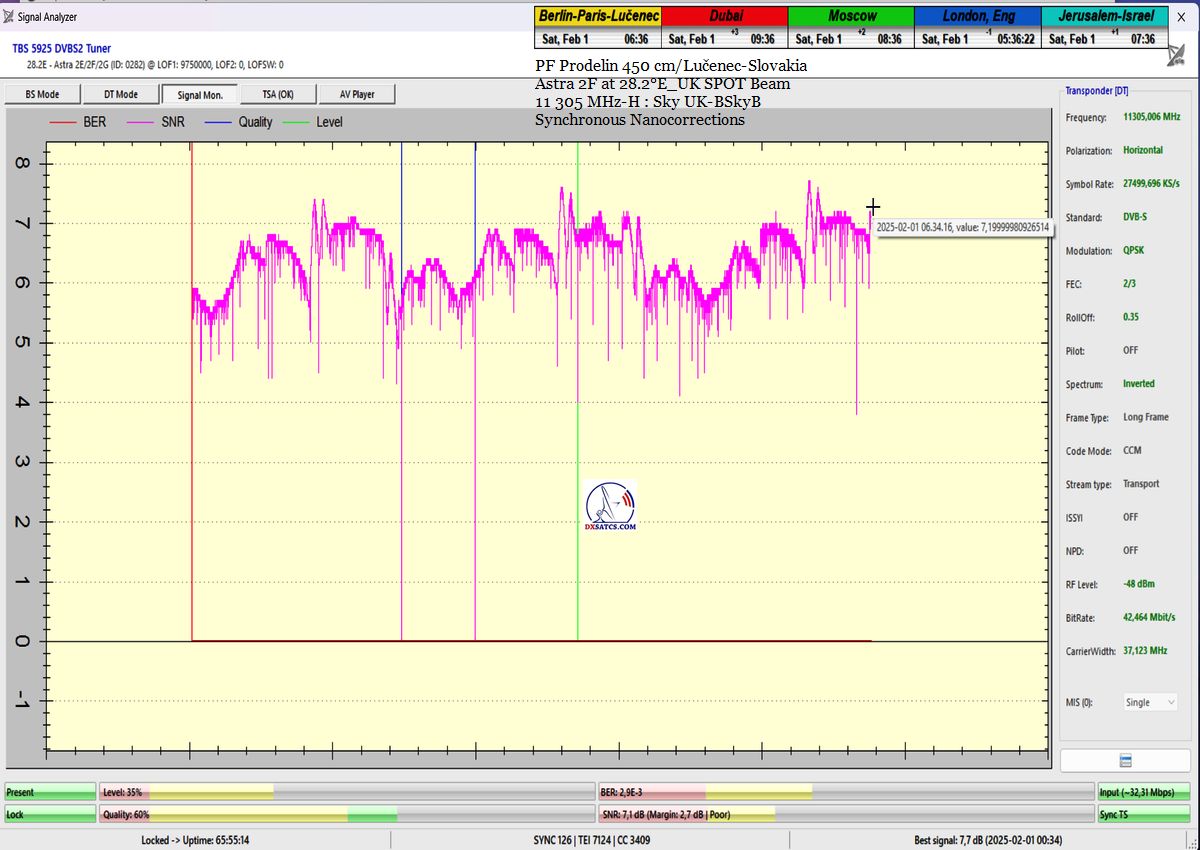 ►SK_Úspešná aplikácia môjho technologického vynálezu "Synchrónne nanokorekcie" na nosnej 11 305 MHz-H Sky UK-BSkyB a stabilita príjmu verifikovaná signálnym monitoringom v celkovej kvantite 102 hodín na juhu  stredného Slovenska