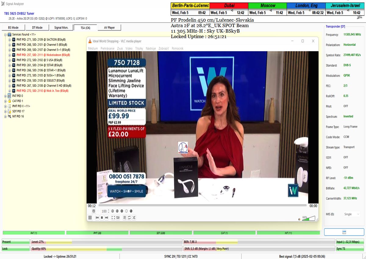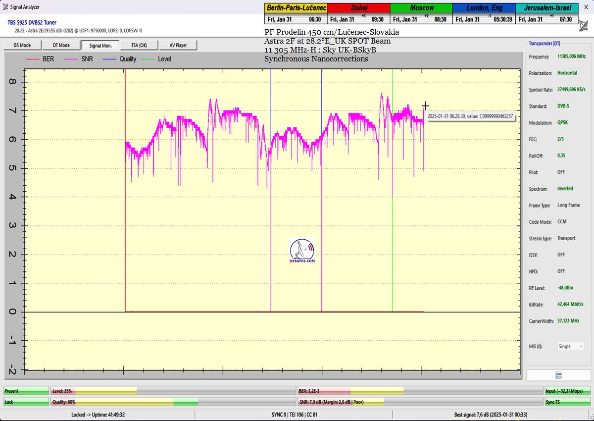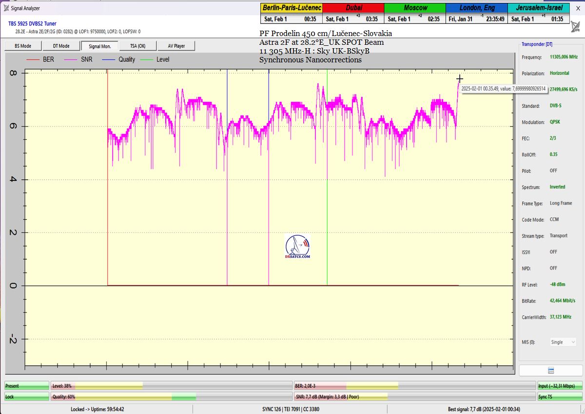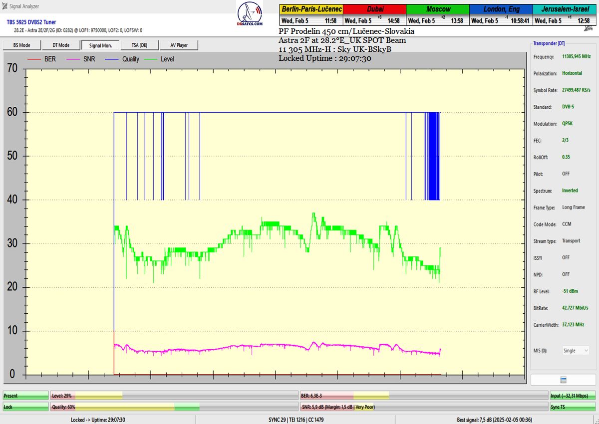 ►SK_Úspešná aplikácia môjho technologického vynálezu "Synchrónne nanokorekcie" na nosnej 11 305 MHz-H Sky UK-BSkyB a stabilita príjmu verifikovaná signálnym monitoringom v celkovej kvantite 102 hodín na juhu  stredného Slovenska