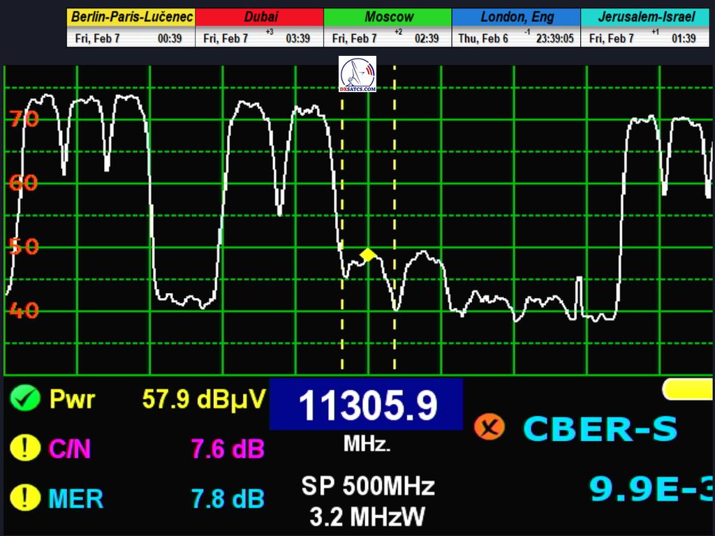 som dosiahol okamžite stabilnú formu príjmu,podobne ako na demodulátoroch TBS,aj bez nutnosti dodatočnej úpravy jedného z parametrov signálu. Pre úplnosť musím spomenúť že na trhu sú aj "analyzátory" v cene 3000-5000 EUR,ktoré klasifikujú príjem z diagramu UK SPOT BEAM hlásením NO Lock/No signal,