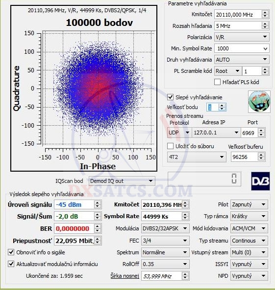| Analyzed frequency spectrum + polarisation | 19 700 - 20 200 MHz , LHCP |